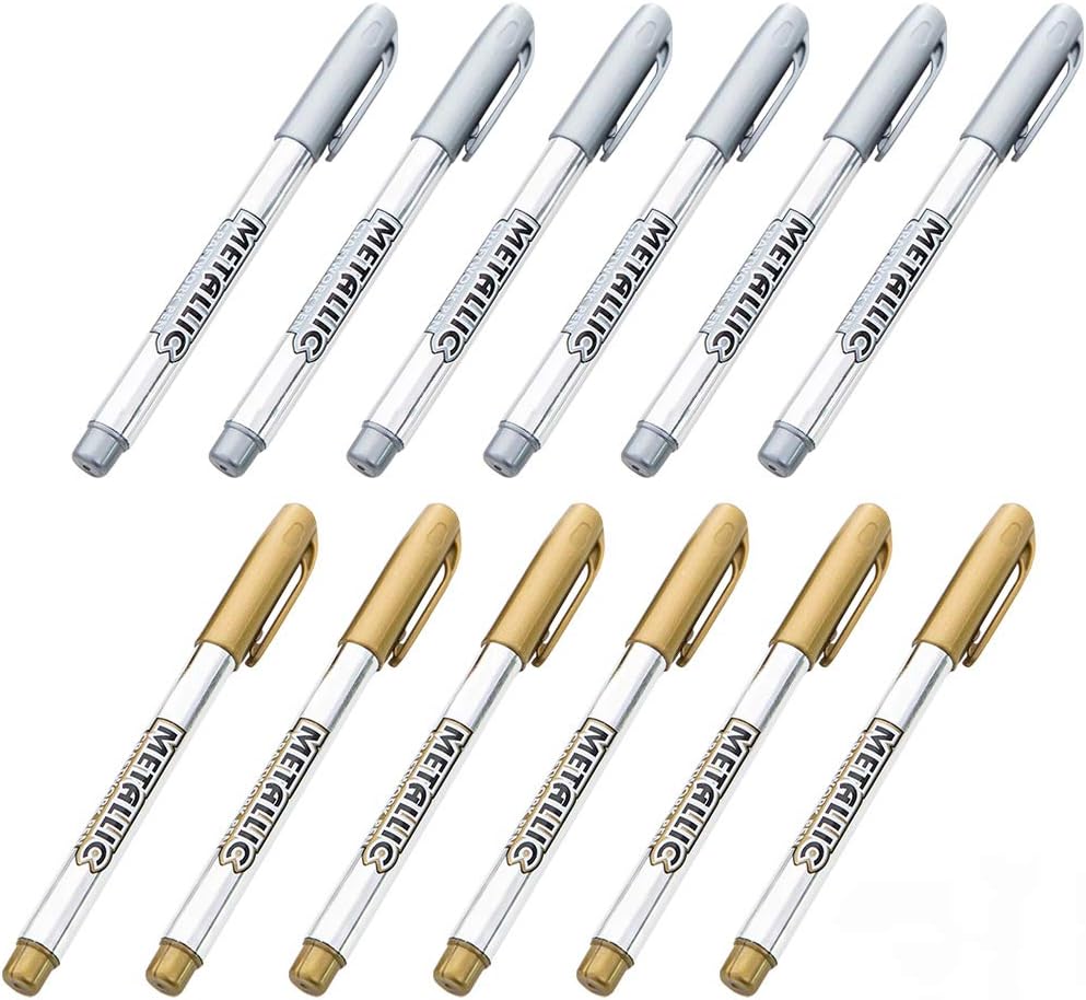 12 قطعة من اقلام تحديد معدنية دائمة، اقلام تلوين معدنية دائمة بلون ذهبي وفضي من كريتي، اقلام رسم معدنية لصنع البطاقات والرسم على الصخور والزجاج والخشب والالبوم الصور