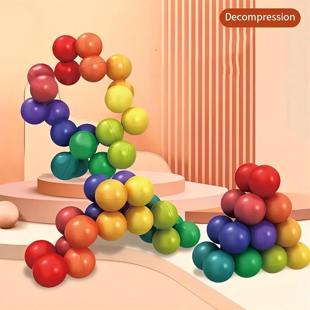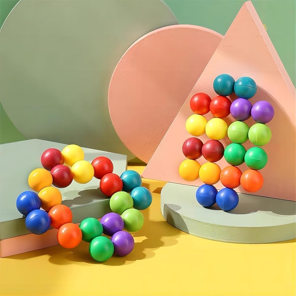 【كرة تململ حسية للتعليم】: هذه اللعبة الحسية التعليمية هي لعبة آسرة تتكون من 20 كرة مترابطة بألوان قوس قزح. من خلال تدوير الكرة، يمكن للأطفال إنشاء أشكال مختلفة، وتعزيز المهارات العملية وتعزيز الإبداع مع تعزيز الانتباه والتركيز من خلال الألوان النابضة بالحياة.