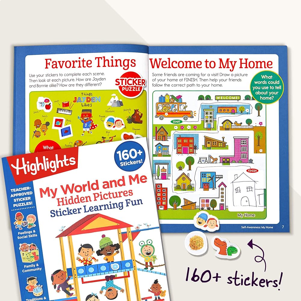 كتاب ملصقات الدراسات الاجتماعية - يجمع بين ممارسة مهارات ما قبل المدرسة الشائعة ومحتوى الدراسات الاجتماعية، يتميز ملصق My World and Me Hidden Pictures بـ 64 صفحة من الأنشطة الجذابة إلى جانب الدروس المناسبة للعمر حول الوعي الذاتي والأسرة والتقاليد والشمول والمزيد