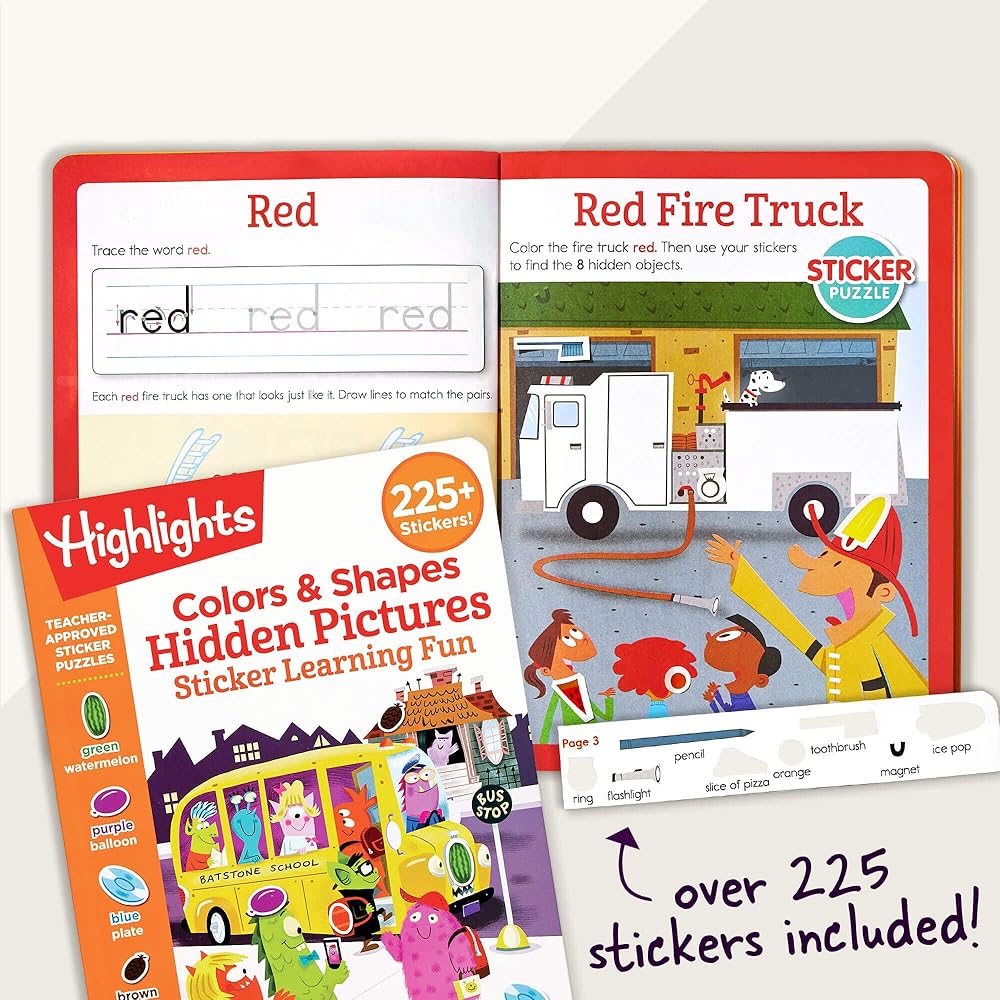 كتاب ملصقات الألوان والأشكال - متعة تعلم ملصقات الصور المخفية للألوان والأشكال هي طريقة عملية للتعرف على الألوان والأشكال؛ يتضمن أكثر من 225 ملصقًا كامل الألوان يمكن للأطفال وضعها على الصفحات لإكمال ألغاز الصور المخفية وممارسة التتبع والأنشطة الأخرى
