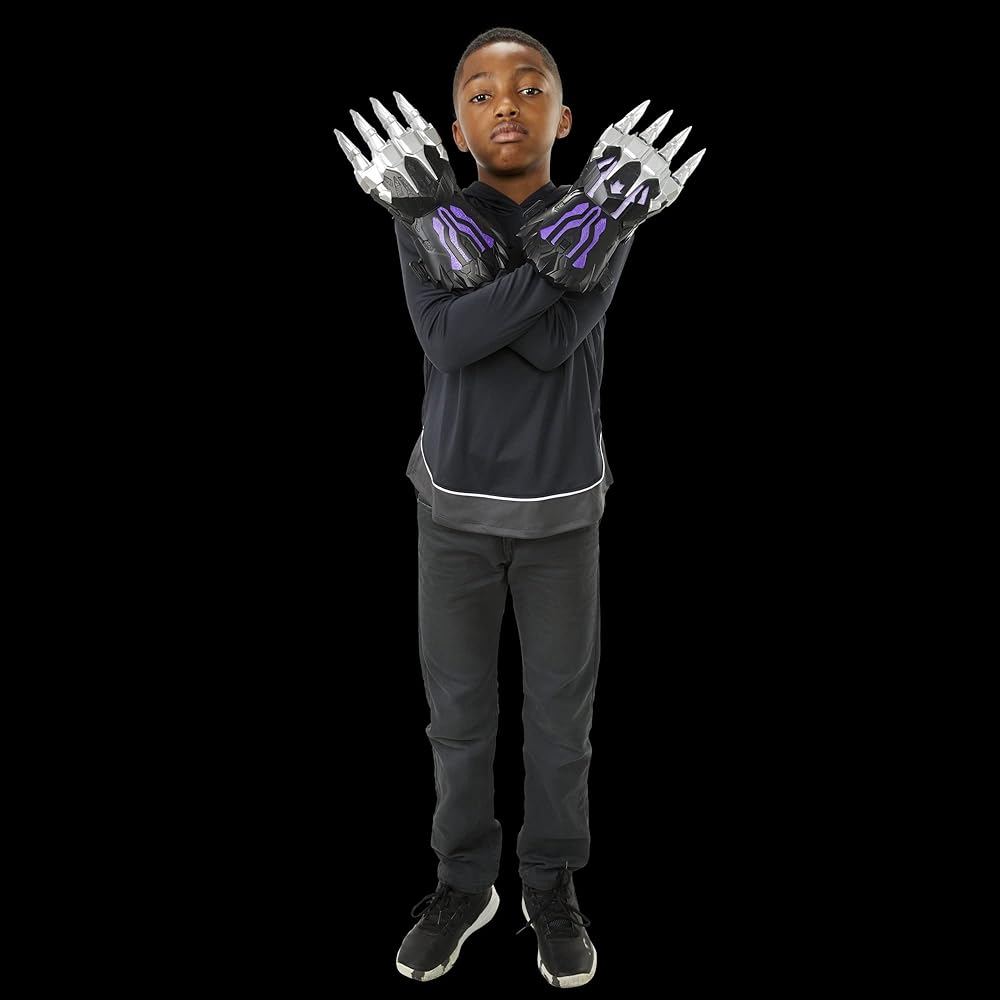 تنشيط الأضواء والأصوات: مع مخالب بلاك بانثر الجاهزة للعمل، يمكن للأطفال من سن 5 سنوات فما فوق التظاهر بإطلاق قوة فيبرانيوم بلاك بانثر بالأضواء والأصوات