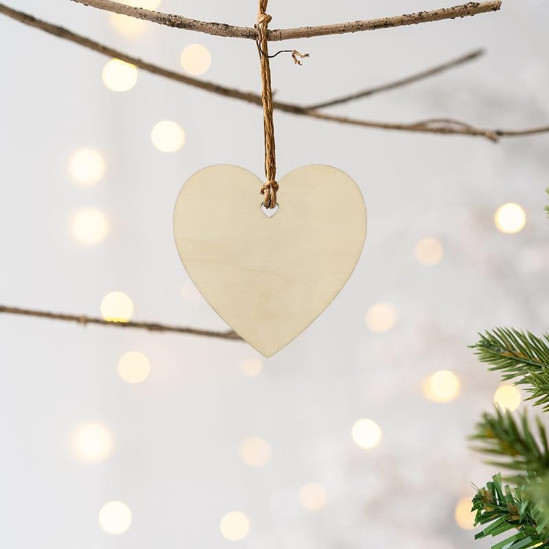 32 حزمة من قطع القلب الخشبية مقاس 10.16 سم، زخارف معلقة على شكل قلب خشبي غير مكتمل، علامات هدايا يدوية على شكل قلب لعيد الشكر وعيد الميلاد وديكور المنزل ومشروع الحرف اليدوية