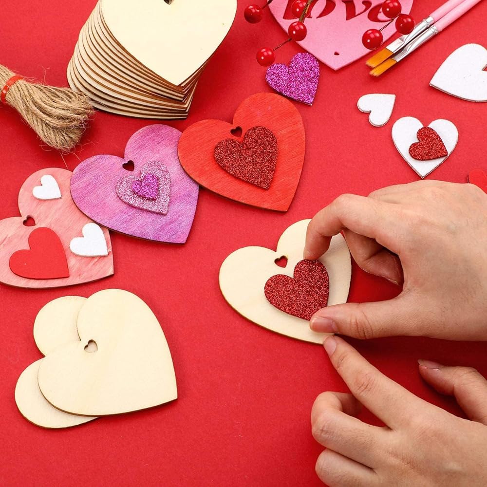 تحتوي العبوة على 32 قطعة من زخارف القلب الخشبية للطلاء، واستمتع بمتعة الرسم الخشبي مع عائلتك، بما يكفي لاستخدامها في الحياة اليومية.