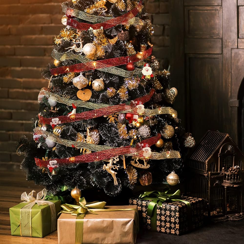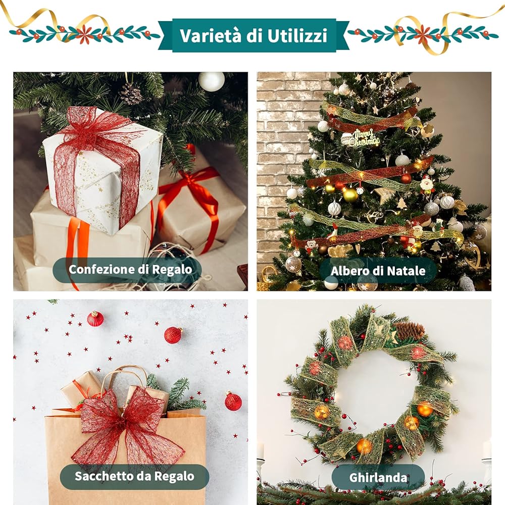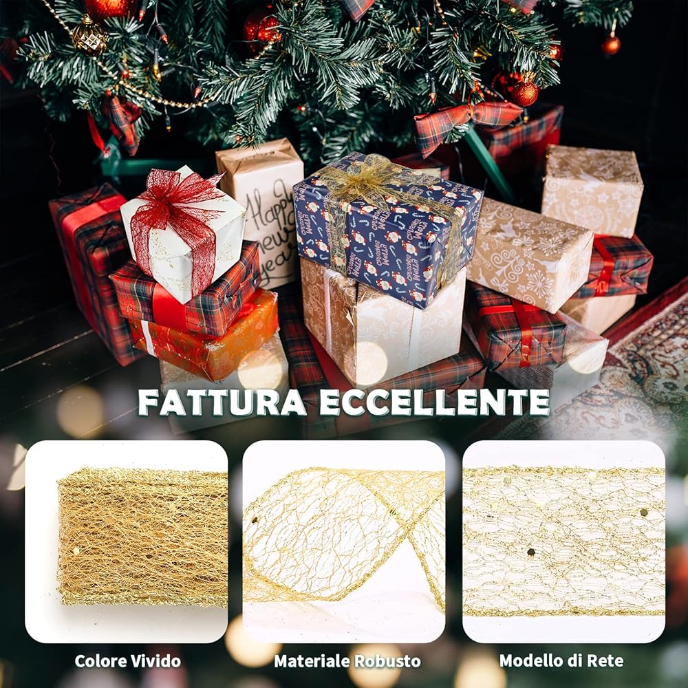- 🌟شريط شبكي فريد من نوعه: شريط شبكي لعيد الميلاد مليء بمسحوق ذهبي لامع مما يجعله أكثر لمعانًا.