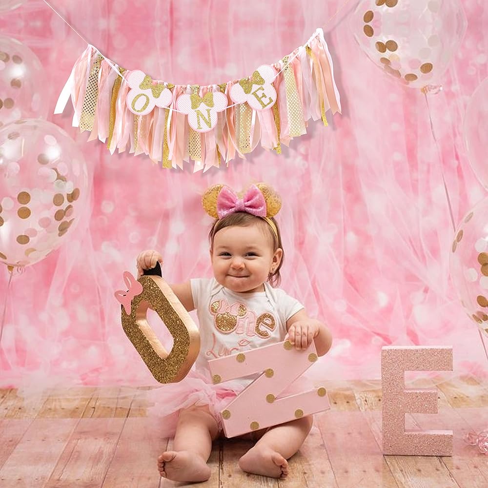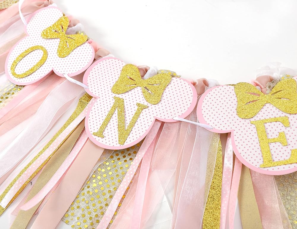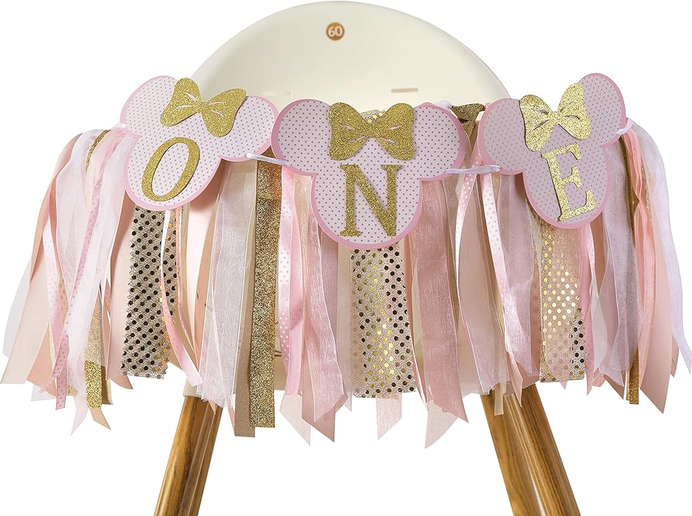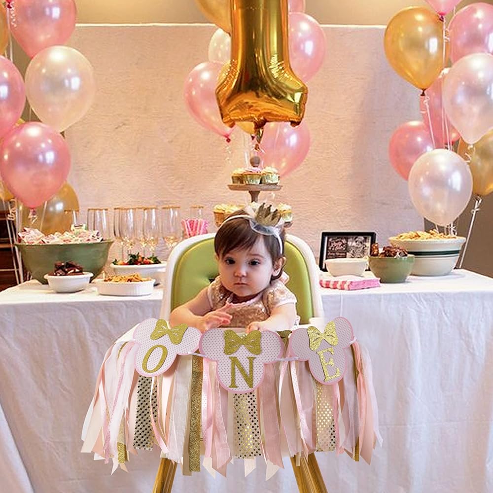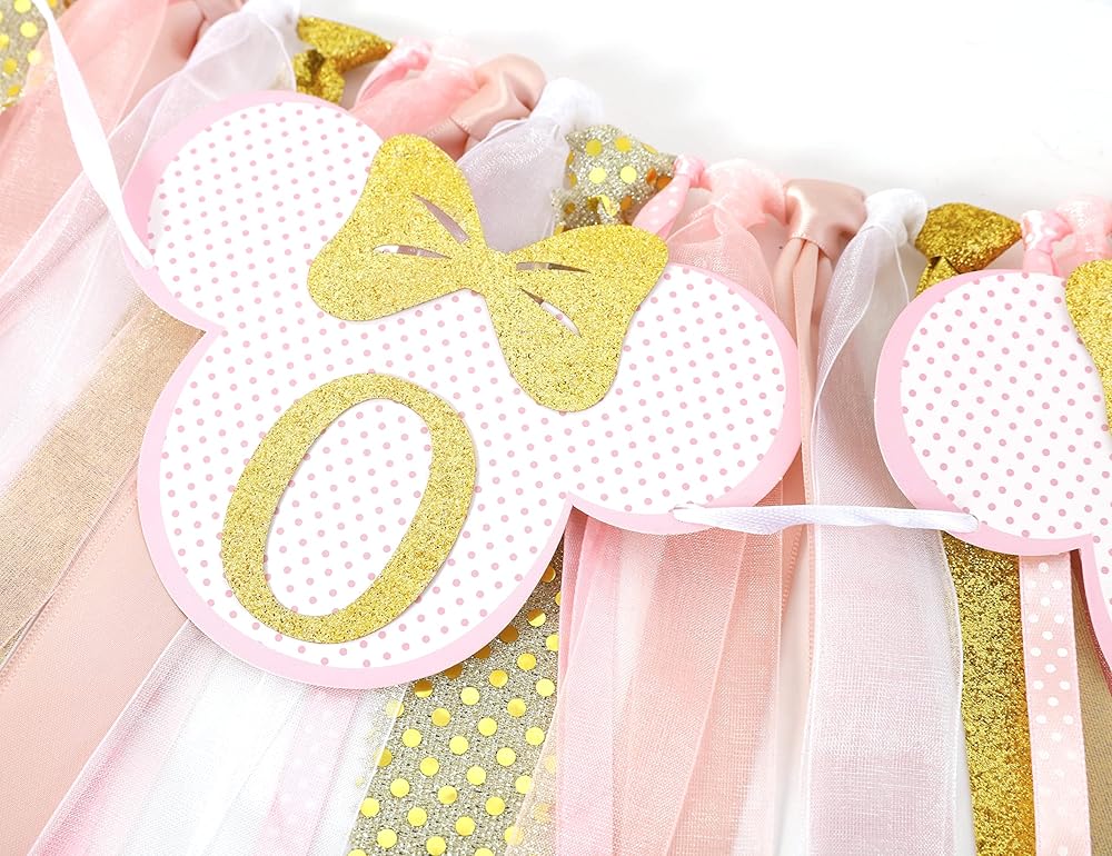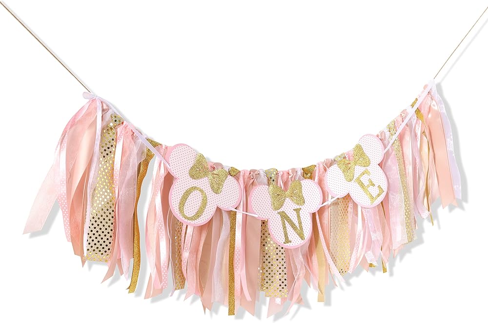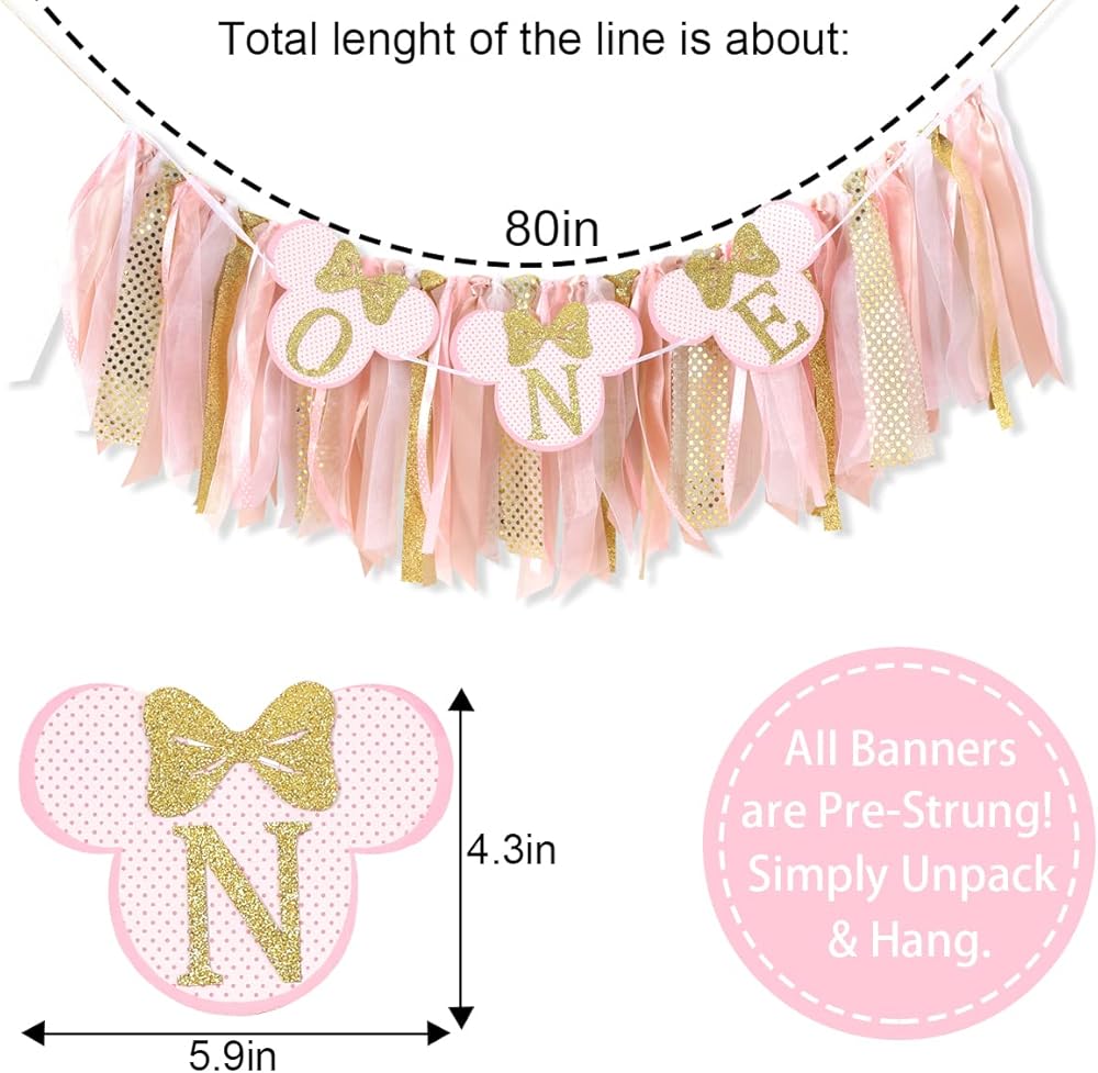 كرسي ميني ماوس المرتفع - اللافتة مجمعة بالفعل، قم بفك حزمها واستخدم الشريط لتثبيتها على الكرسي العالي، إنها جميلة جدًا ومتينة للغاية وذات جودة عالية، أنا متأكد من أنك ستحبها، ديكور لطيف جدًا لعيد ميلاد ابنتك الأول!