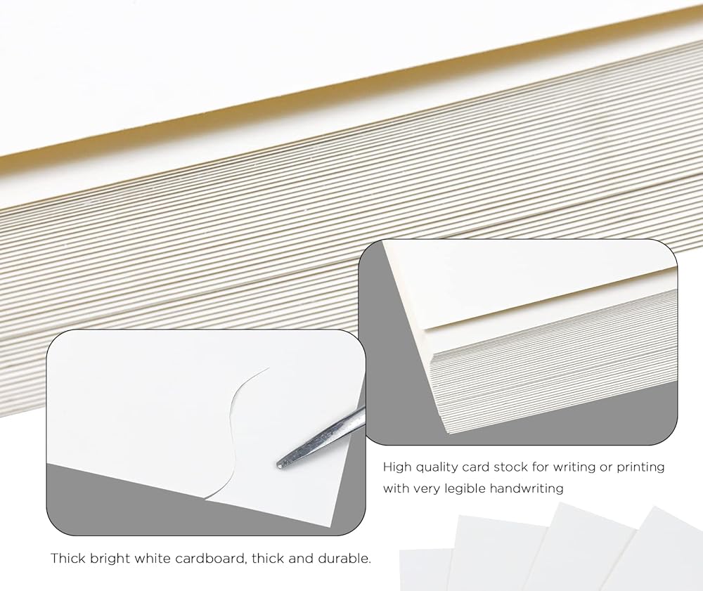 جودة عالية: البطاقات مصنوعة من ورق أبيض طبيعي، مصممة لإعطاء كل ورق مقوى شعورًا أكثر أناقة وأناقة. هذه البطاقات مصنوعة من ورق قوي ثقيل الوزن.