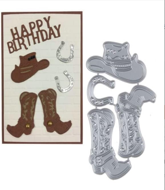 قوالب قطع معدنية من شاين بير كاوبوي اكسيسوريز لدفتر القصاصات والحرف اليدوية على شكل حدوة حصان وقبعة حذاء ورقية، قالب استنسل 62100 ملم