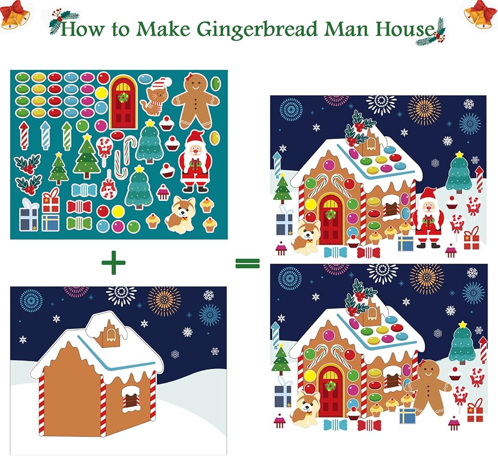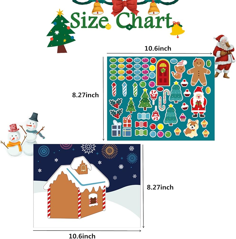 • Make a Gingerbread House Sticker - Classic Christmas elements, gingerbread man, Santa Claus, Christmas tree, Christmas gifts, Christmas berries, etc.The gingerbread house set for kids is designed for Christmas, Kids can use their imagination to DIY gingerbread man or Santa's house!