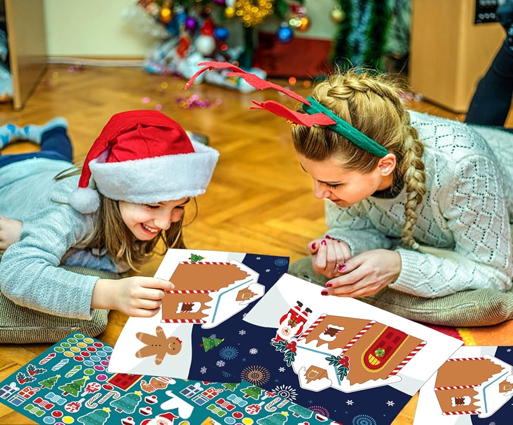 • Premium Materials - 24 sheets make your own christmas house stickers to let girls and boys create santa, Gingerbread house stickers all their own. Our Christmas party favors sticker is colourful printed, easy to post and remove, safe to children!