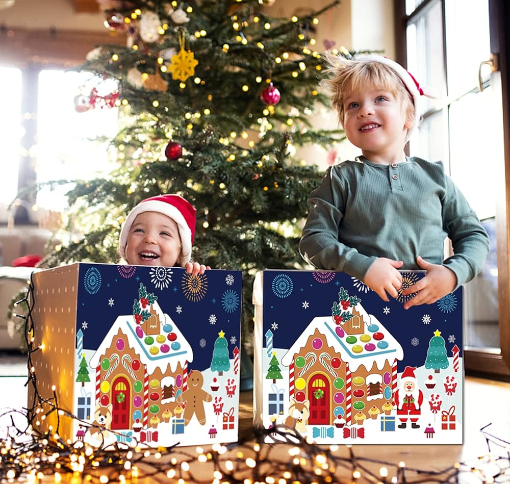 24 قطعة من ملصقات صنع منزل خبز الزنجبيل، ملصقات منزل رجل الثلج، ملصقات عيد الميلاد DIY للأطفال، ملصقات ألعاب حفلات عيد الميلاد للأطفال، هدايا حفلات عيد الميلاد للأطفال الصغار