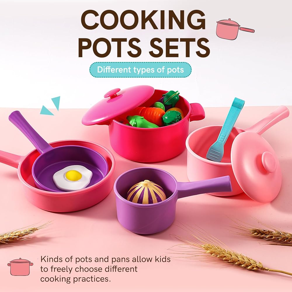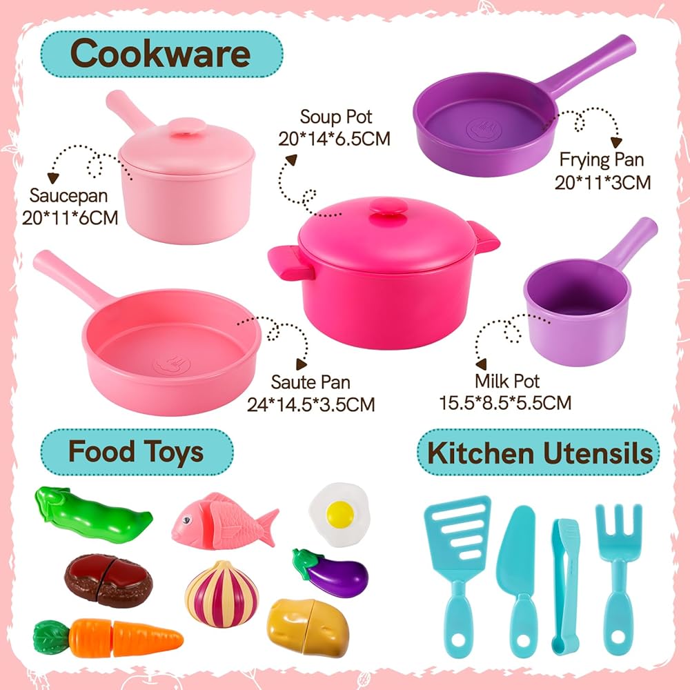 • 【Complete Kitchen Cooking Accessories】: Contains 5 different models of pots and cooking utensils, a variety of vegetables and foods, a wealth of accessories to give children the most realistic game experience.
