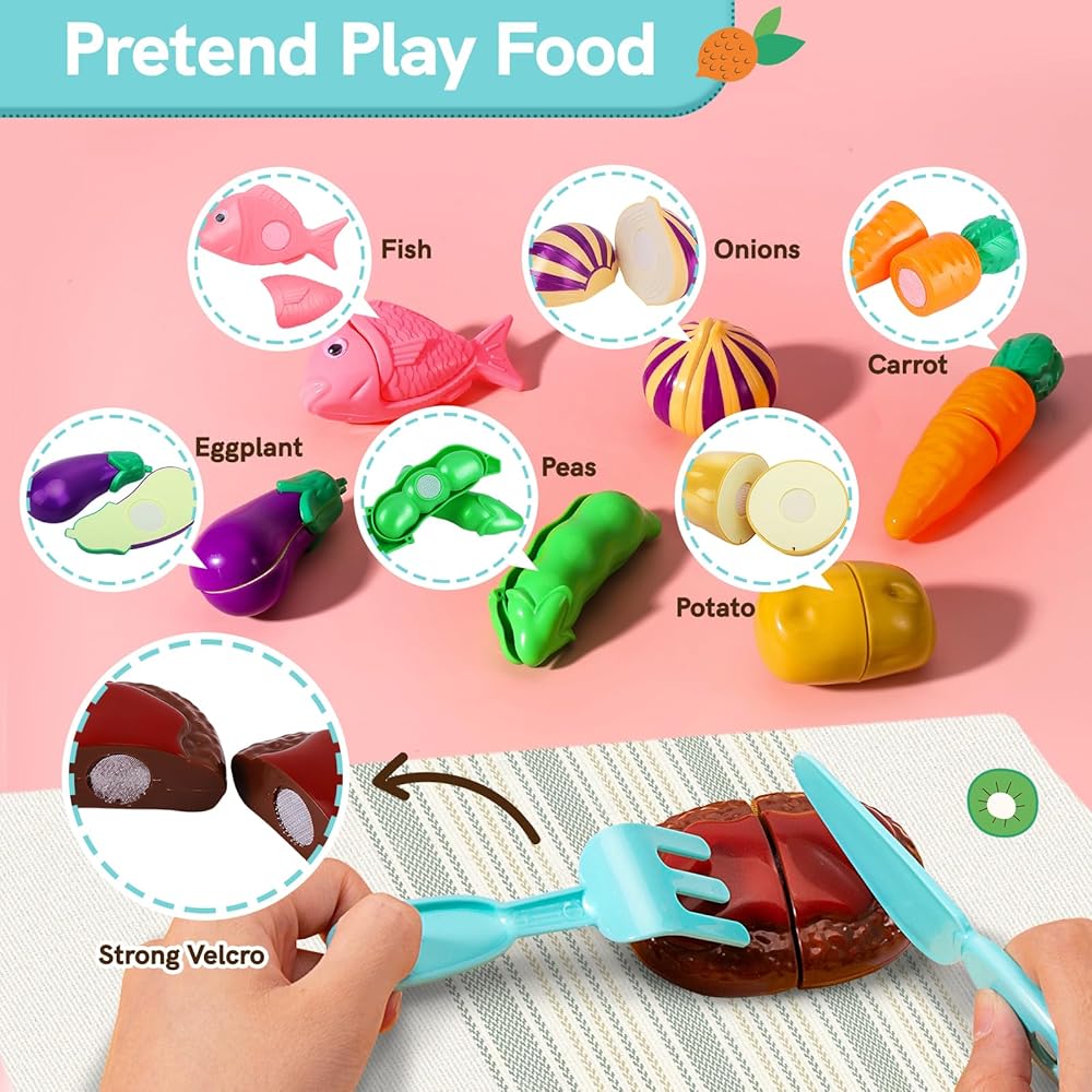 • 【Cutting Toys Play Food】: Equipped with knives and food that can be cut, your little ones will be immersed in the pleasure of handling food for hours.