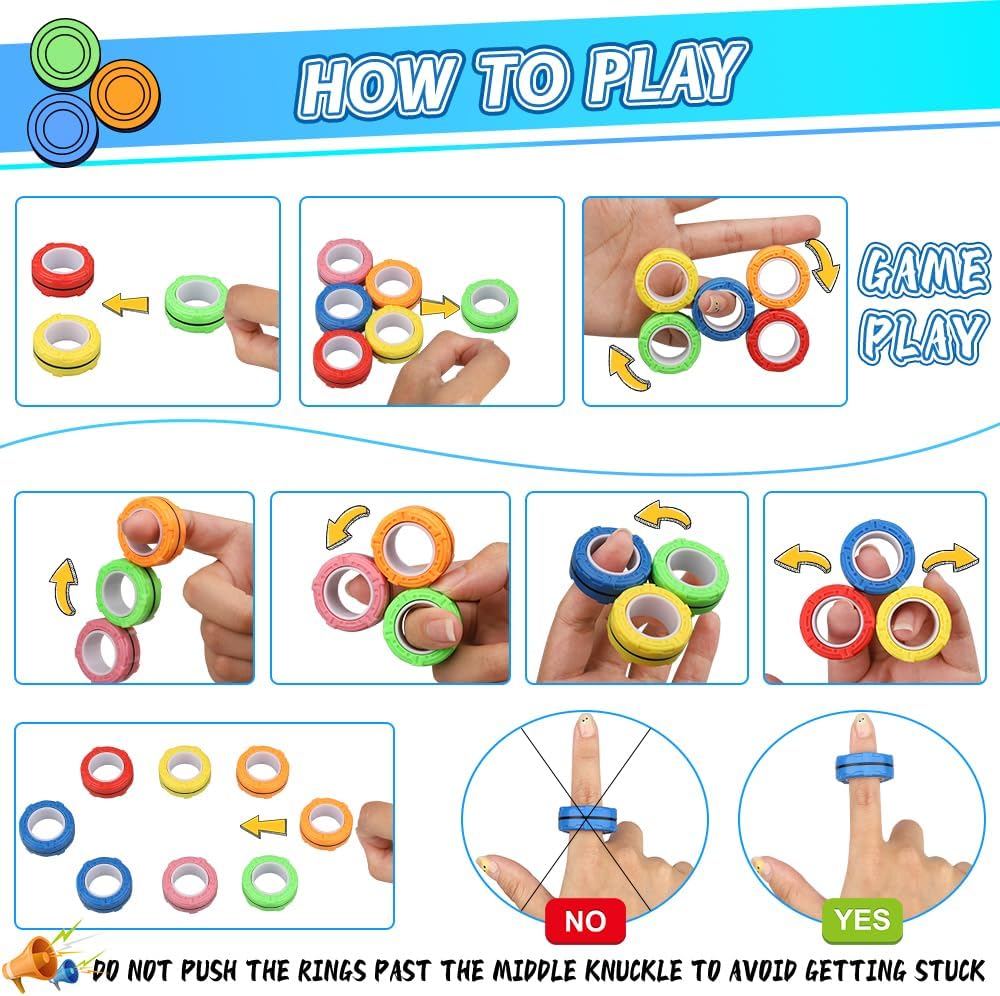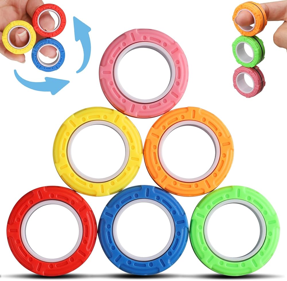 إصبع المغناطيسي الدائري والعتاد تفضل الحفلات للأطفال، ألعاب التململ 6 حزمة، مغناطيس تململ سبينر هدية اللعب التوحد لعبة الحسية أكياس جودي حشو، صندوق الكنز جوائز الهدايا للبنين الفتيات