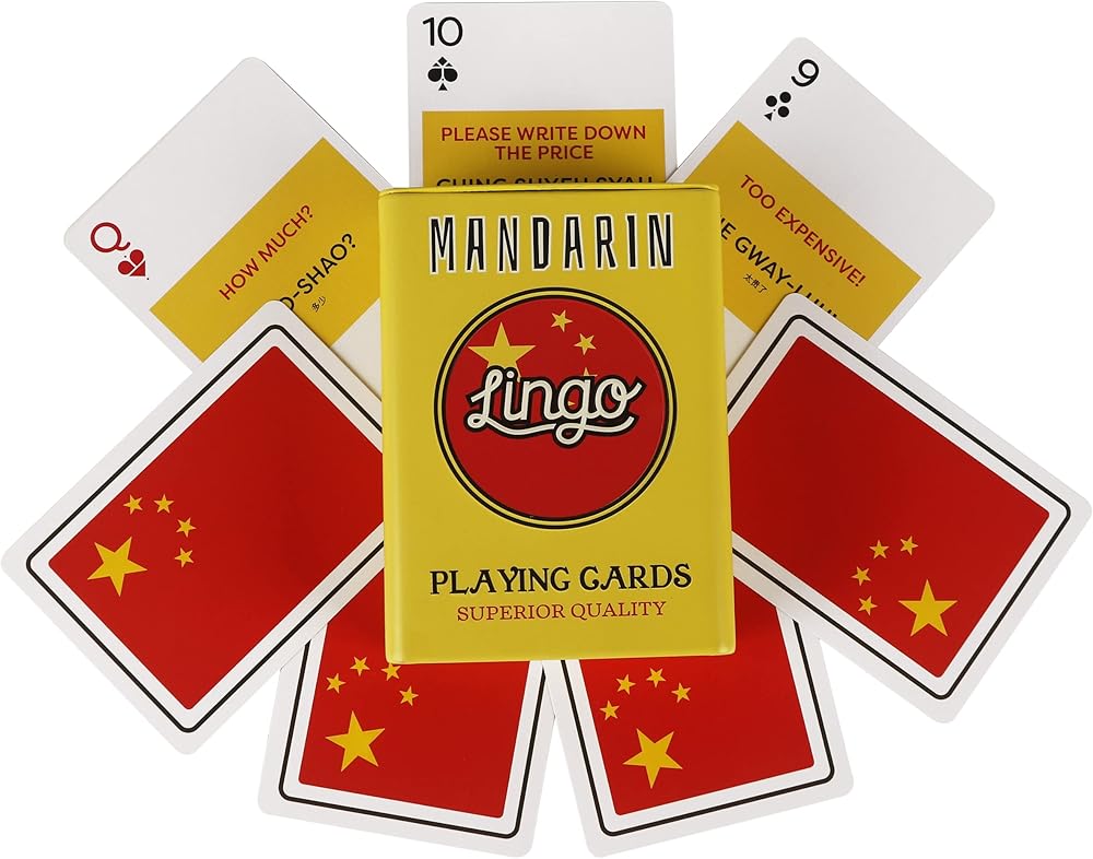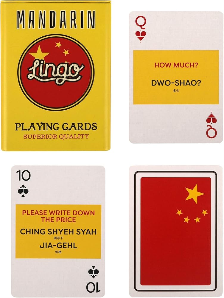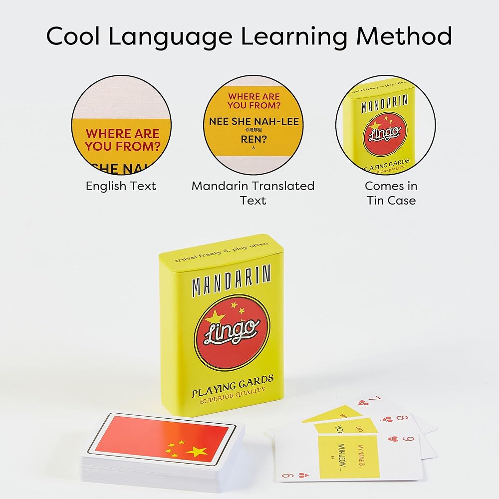 طريقة تعلم اللغة الرائعة - تأتي أوراق لعب لينجو بمعظم اللغات الشائعة مثل: الروسية والفرنسية واليوسفي والإسبانية والإيطالية والألمانية واليابانية. تعلم لغة مع بطاقات لعب فريدة من نوعها!
