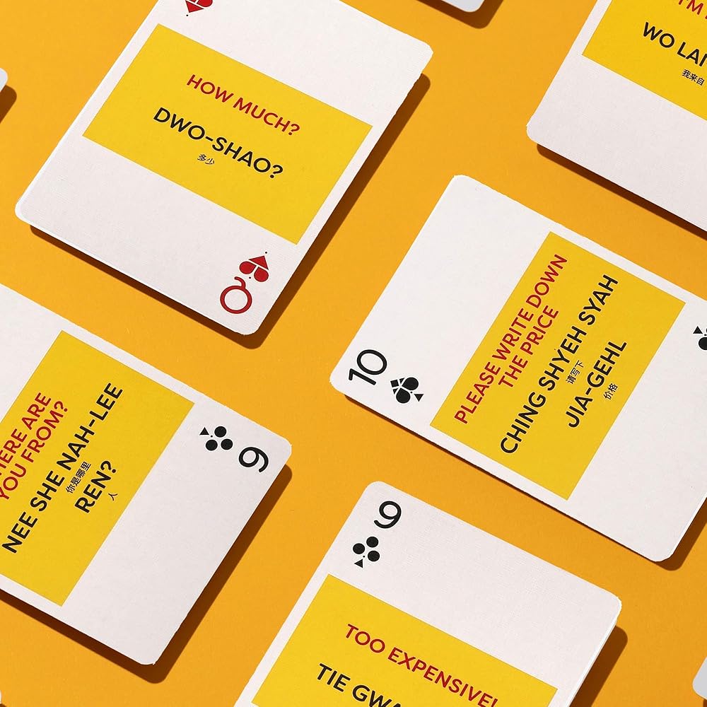 مجموعة لعب قياسية - تحتوي كل مجموعة بطاقات على 54 من أكثر العبارات المفيدة التي يجب معرفتها في ألمانيا، كاملة مع النطق الصوتي، وتتميز بمجموعة تقليدية من 52 بطاقة لعب واثنين من الجوكر. توفر بطاقات الفلاش هذه مقدمة للغة الألمانية الشائعة وهي مثالية لمتعلمي اللغة الذين بدأوا للتو.
