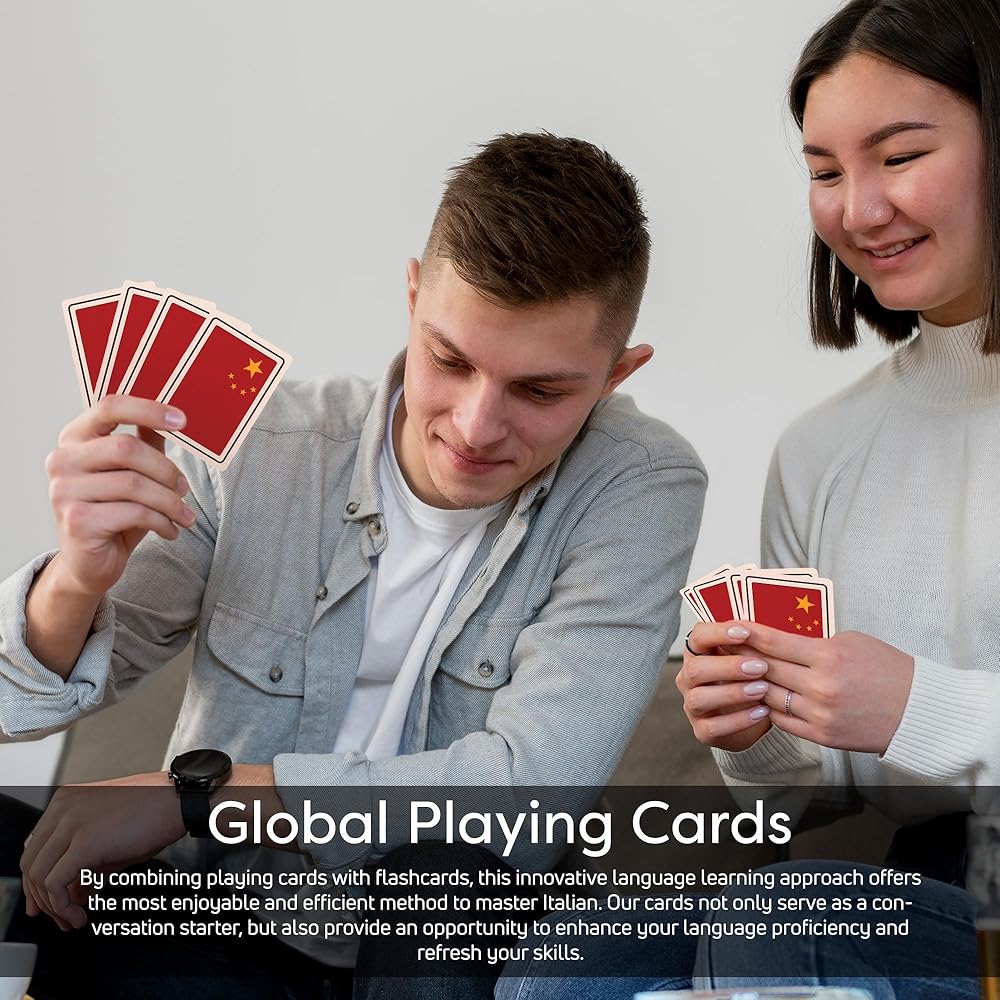 بطاقات اللعب العالمية - تم الجمع بين بطاقات اللعب والبطاقات التعليمية في هذا النهج المبتكر لتعلم اللغة، مما يجعلها الطريقة الأكثر تسلية وفعالية لالتقاط بعض اللغات الألمانية! لا تعد بطاقاتنا بداية للمحادثات فحسب، بل ستمنحك أيضًا فرصة لتحسين مهاراتك اللغوية.
