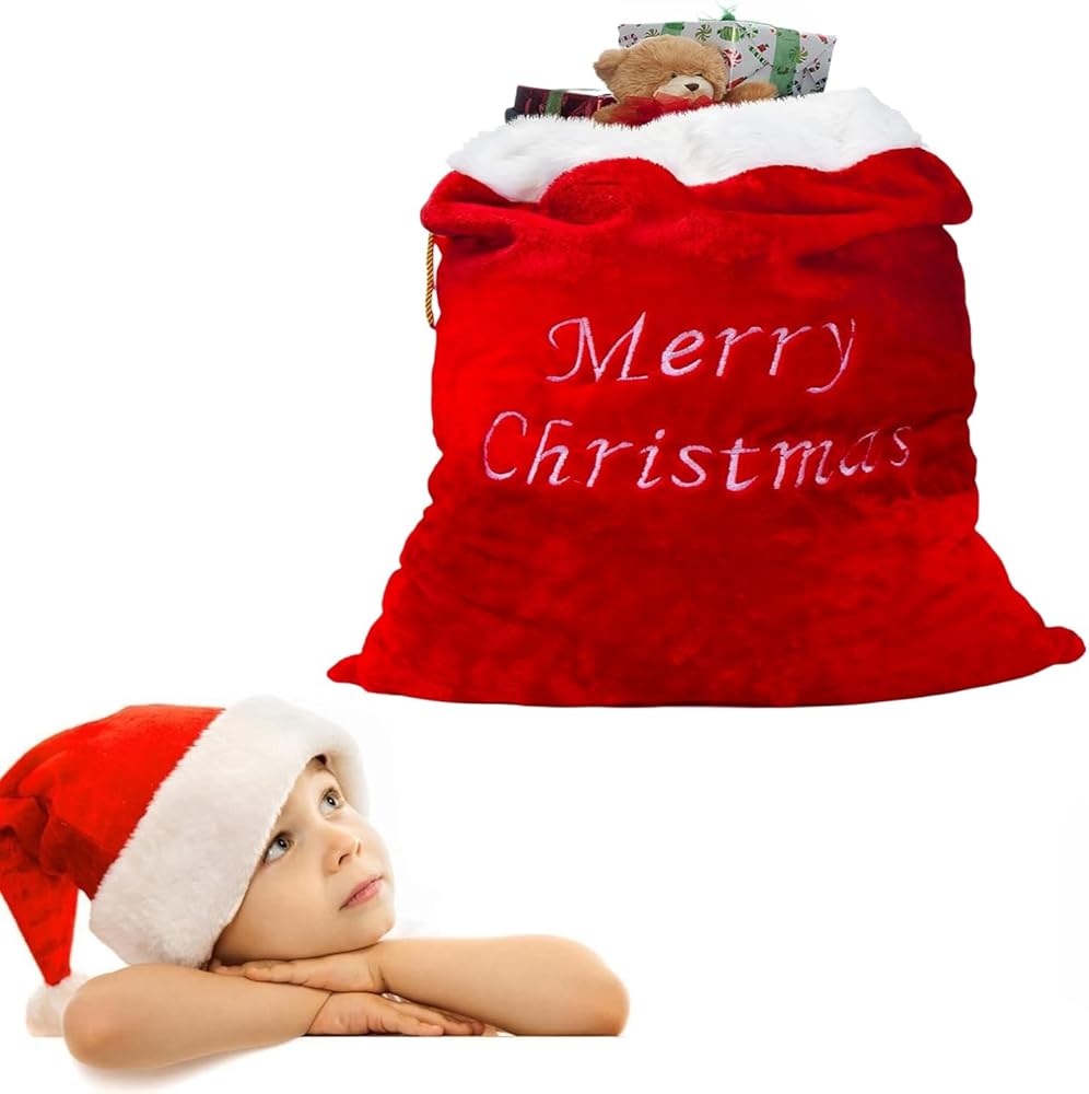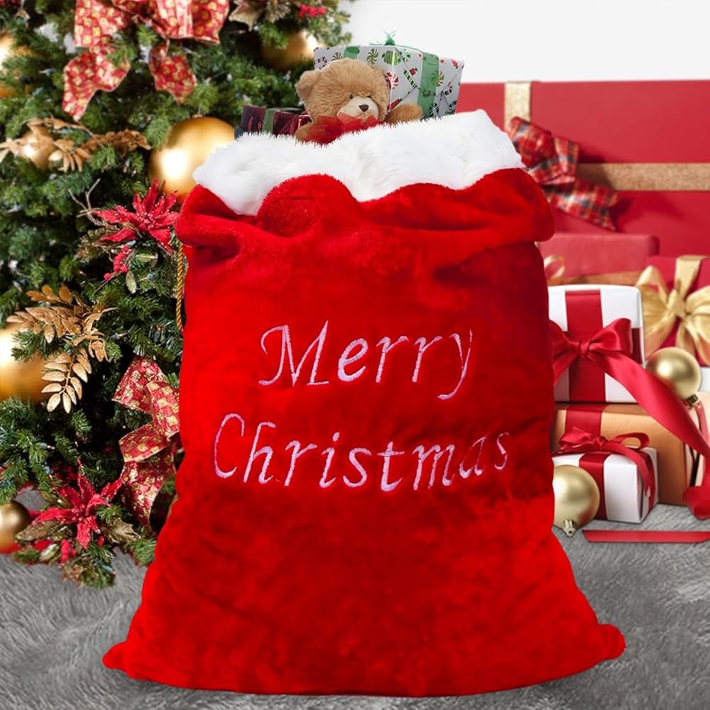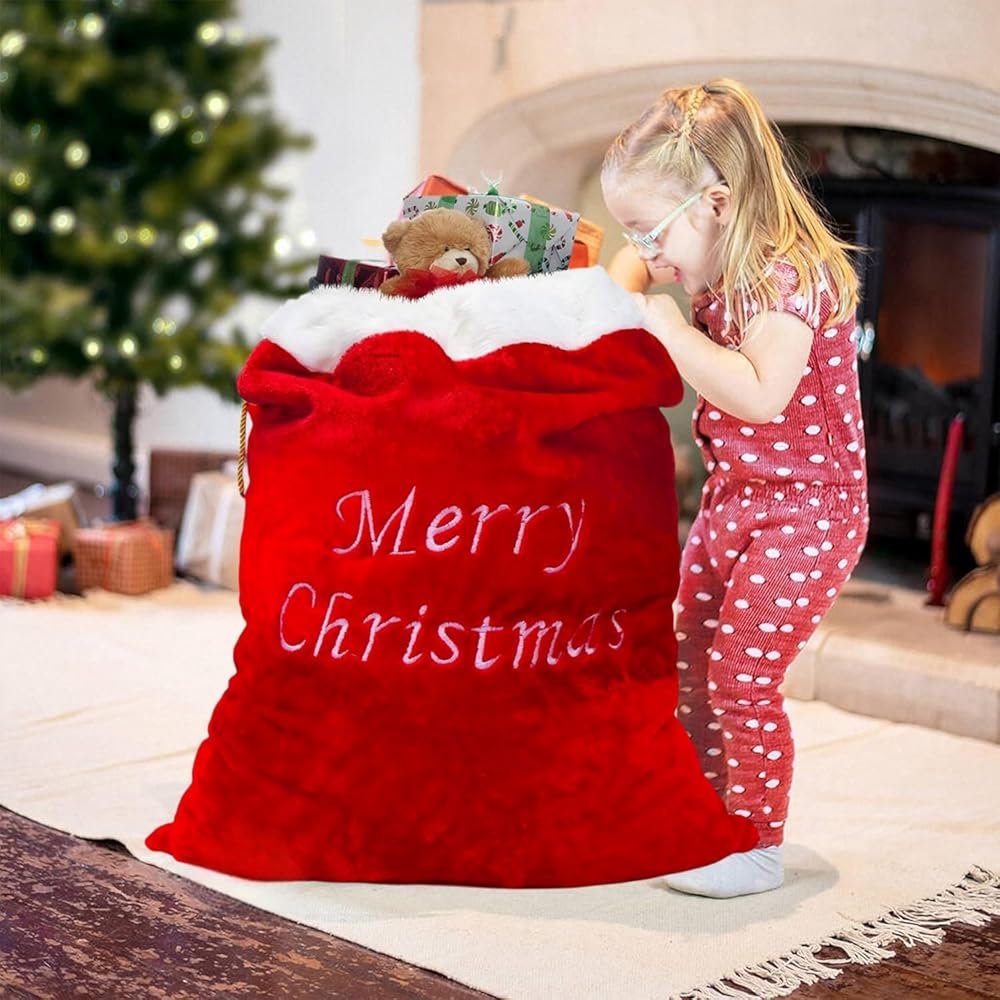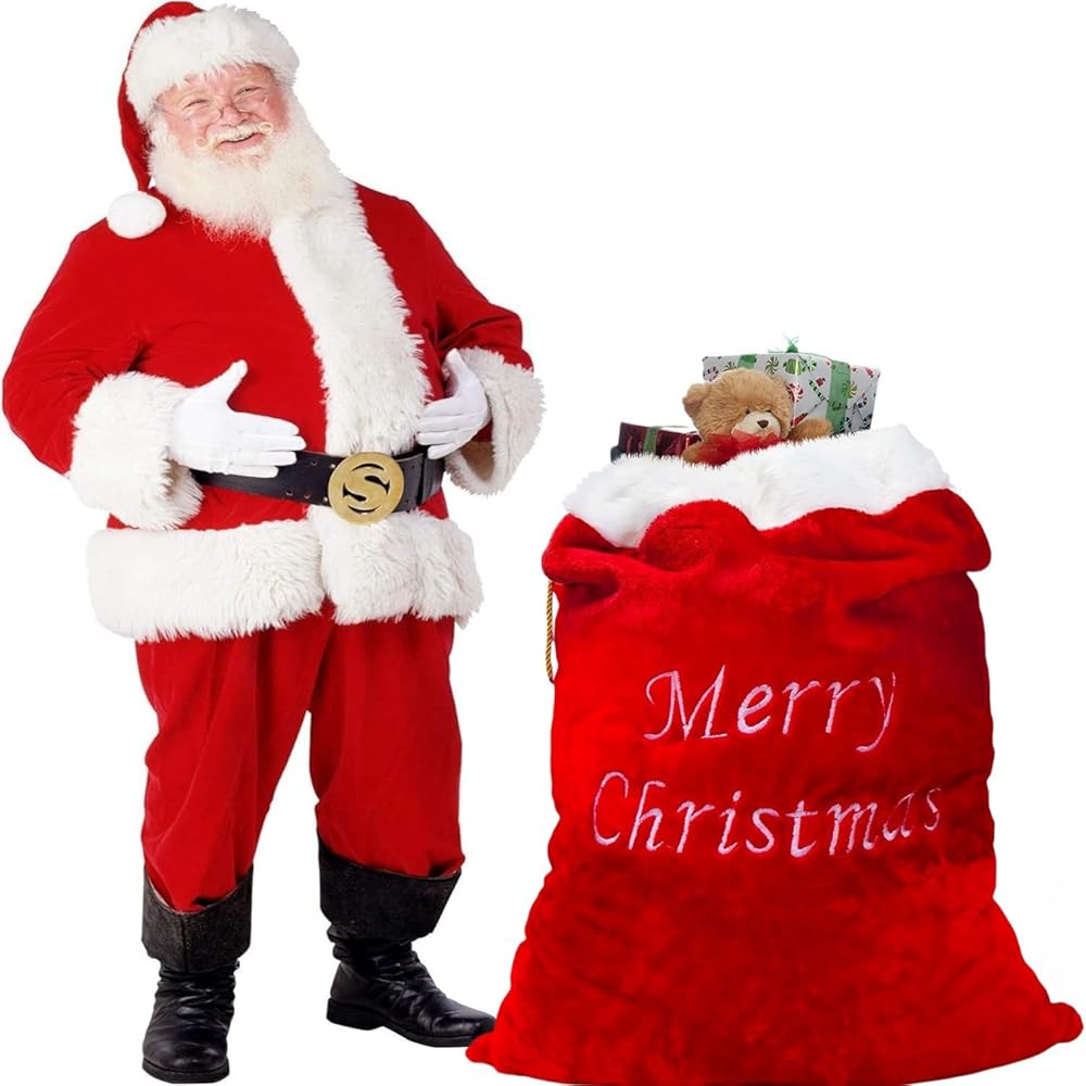 كيس هدايا سانتا من القطيفة الفاخرة الناعمة التي تبدو رائعة في كل منزل. لن تصدق أسعارنا الرائعة على هذه الحقيبة عالية الجودة.