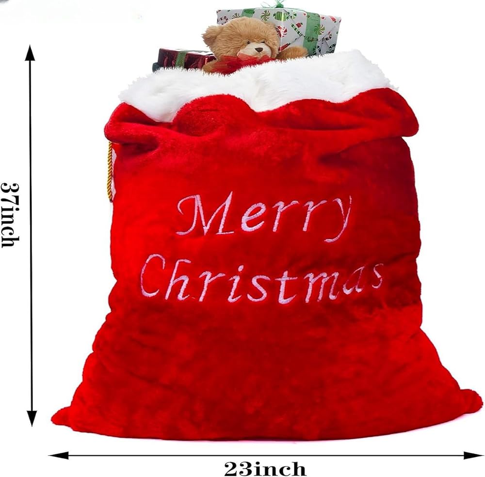 حقيبة هدايا سانتا المخملية الفاخرة كبيرة الحجم 3D أفخم الفراء مع حبل الرباط - 34 بوصة طول × 24 بوصة عرض