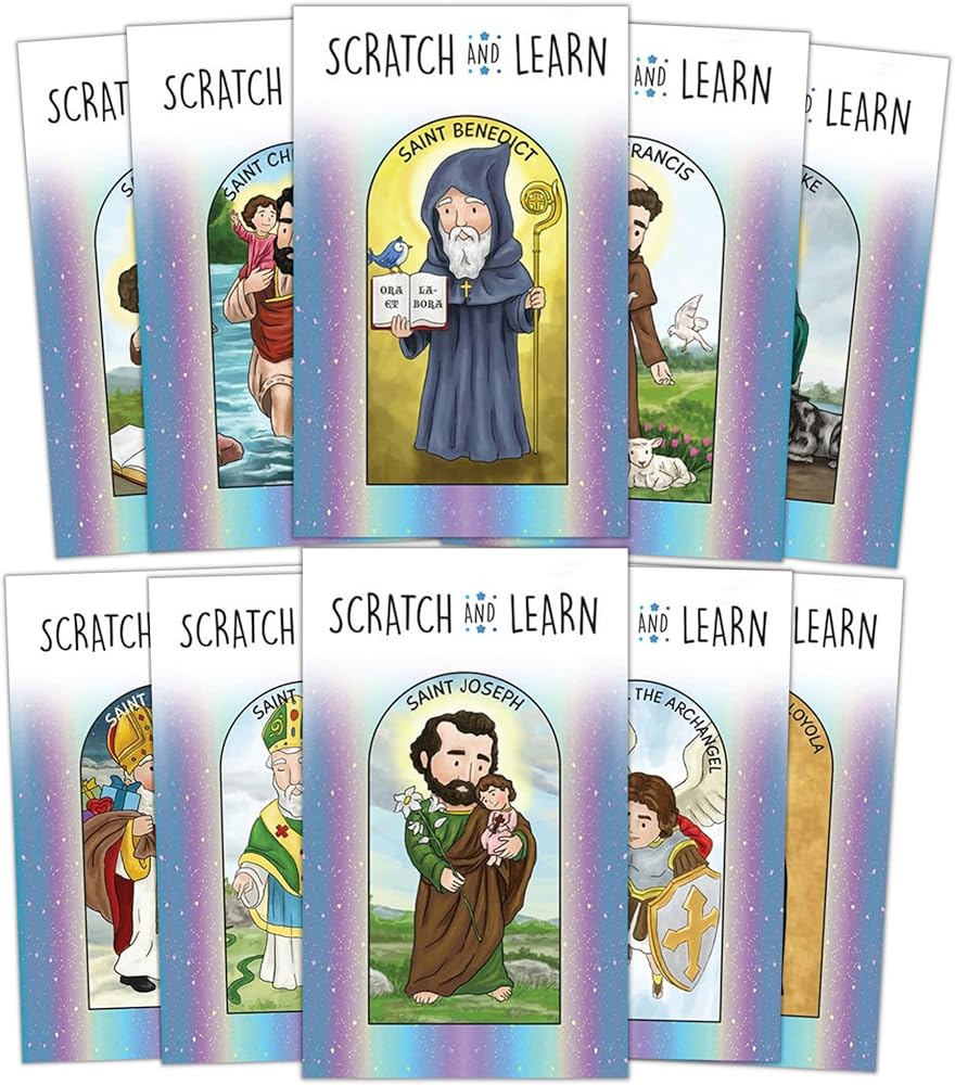 الهدايا الدينية اخدش وتعلم بطاقات القديسين، مجموعة بطاقات فلاش تعليمية كاثوليكية، حزمة من 10