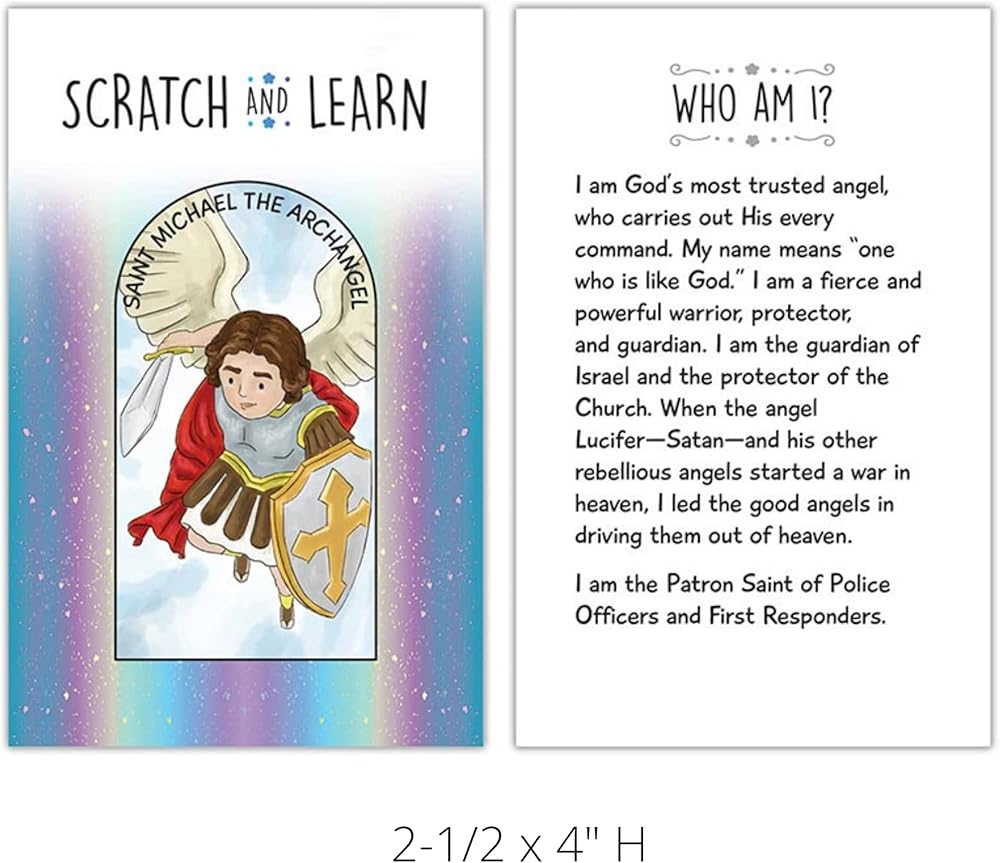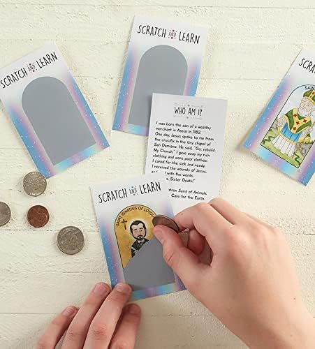 اخدش وتعلم بطاقات القديسين التعليمية تحتوي البطاقات على معلومات تتعلق بالقديس على ظهرها. اقرأ الجزء الخلفي من البطاقة أولاً وحاول تخمين القديس أو العنوان الصحيح - بطاقات تعليمية متينة من الورق المقوى مع عمل فني ملون. مقاس بطاقات البطاقات 6.35 سم × 10.16 سم، 10 بطاقات مع قديسين مختلفين في كل منها تأتي في العبوة هدية رائعة للأولاد الذين يتخذون خطوات في الإيمان.