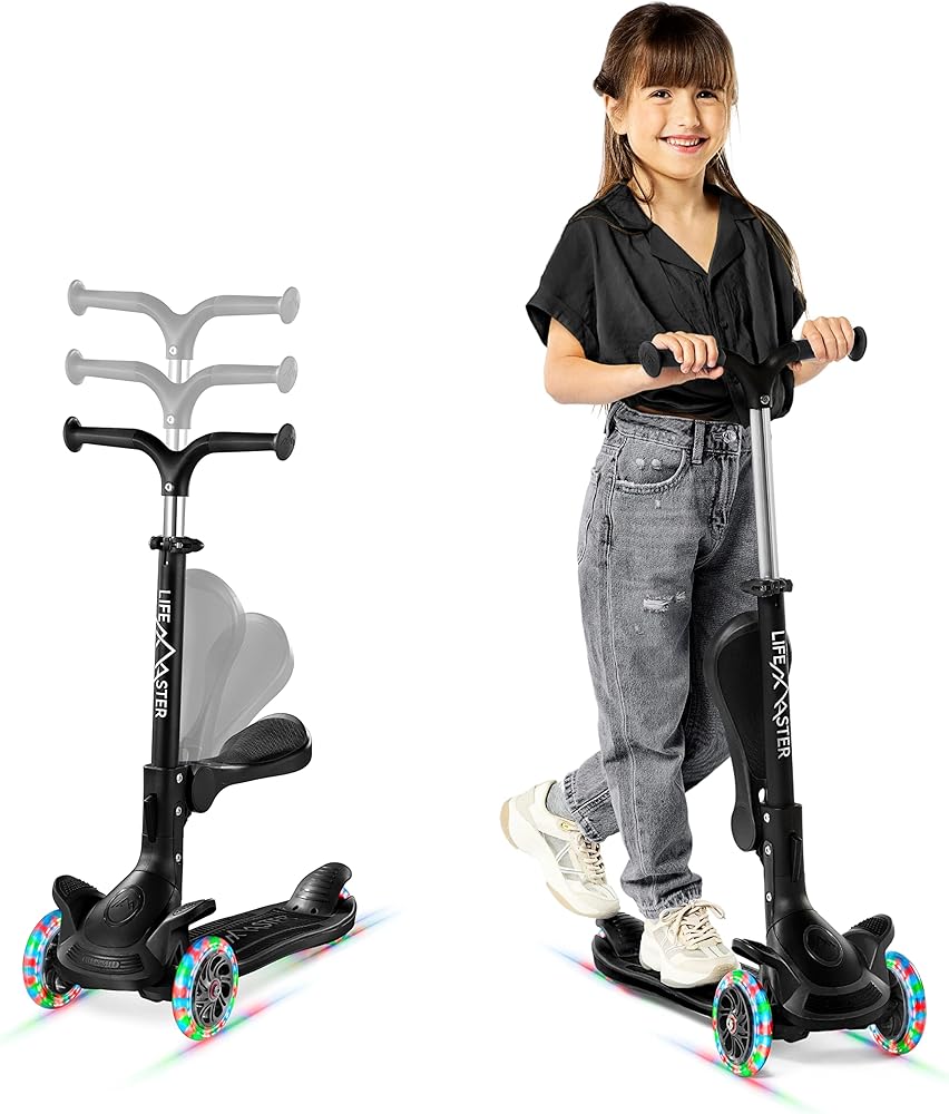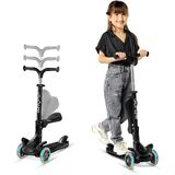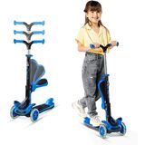 سكوتر الأطفال - اجعل عملية السكوتر ممتعة للغاية لطفلك مع سكوتر الركل 2 في 1 الذي يوفر خيار الركوب أثناء الوقوف بالإضافة إلى خيار الجلوس بفضل المقعد المدمج القابل للطي. يوفر تصميم السكوتر ثلاثي العجلات ثباتًا ممتازًا على عجلات انزلاقية فائقة النعومة تدوم طويلاً وتومض عند التحرك!