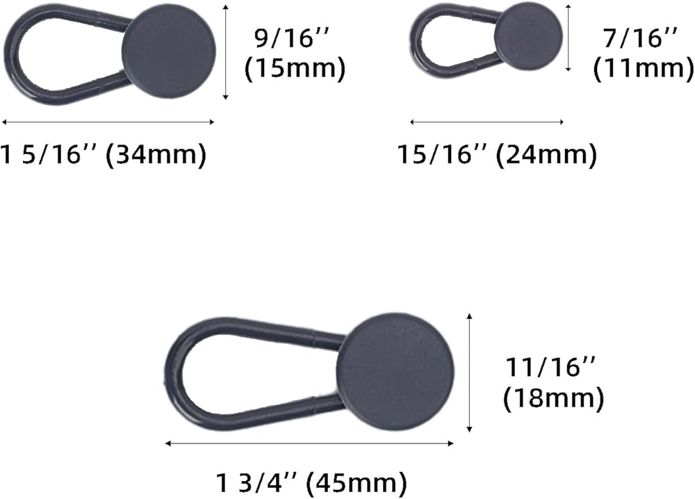 • قابلة للتوسيع في 3 مقاسات: تتضمن مجموعة موسع البنطال هذه مقاسين من الأزرار بقطر حوالي 0.4 انش (خصر تمديد البنطال بمقدار 0.5 انش)، 0.6 انش (خصر تمديد البنطال بمقدار 1 انش) وقطر 0.7 انش (خصر تمديد البنطال بمقدار 1.4 انش). يمكنك اختيار موسع خصر أكثر ملاءمة وفقًا لمحيط خصر سروالك، والزر يجعل خصر البنطال أكبر وأكثر راحة.