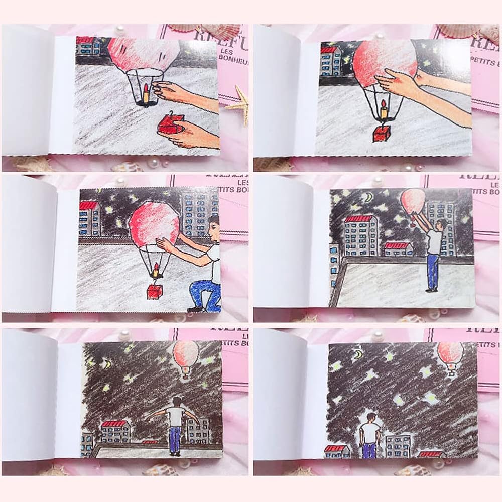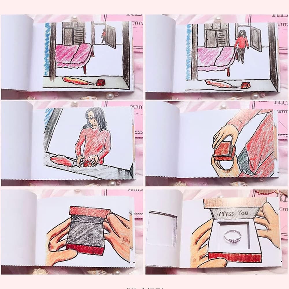 تصميم مبتكر: يحكي الكتاب المكون من 120 صفحة قصة أن الصبي ينقل حبه وخاتمه إلى فتاته بواسطة فانوس كونغمينغ، اقلب الصفحات بإبهامك، تمامًا مثل مشاهدة فيلم صغير. الرسم اليدوي الواضح والألوان النابضة بالحياة تجعل الصورة تبدو أقوى. الصفحة الأولى عبارة عن ورقة فارغة، يمكنك ترك رسالة جميلة تريدها لحبيبك باستخدام قلم التحديد. الصفحات الأخيرة من الكتاب مصممة بشكل جيد مع فتحات لإخفاء خاتمك. يضمن الغطاء الصلب Lockwire ثباتًا جيدًا دون سقوط الصفحات