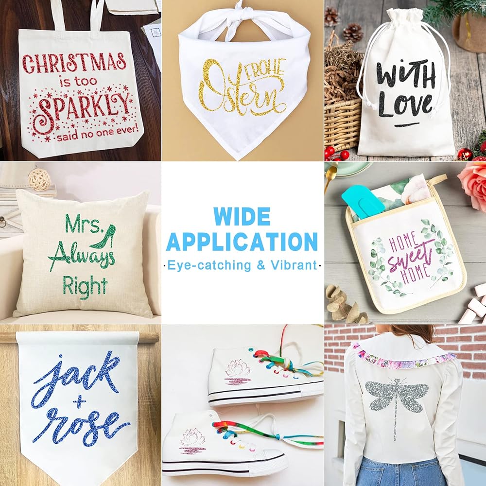 • التصاق جيد - يمكن للمكواة اللامعة على الفينيل أن تتحمل الغسيل والاحتكاك المتكرر. التصاق جيد ويلتصق بالأقمشة جيدًا، لا يتقشر أو يبهت بسهولة، ويمكن وضعه على الملابس والحقائب والأحذية والجوارب والقبعات والمرايل والمناديل وغيرها من أسطح المنسوجات. *ملاحظة: يرجى الانتظار 24 ساعة قبل الغسيل الأول.