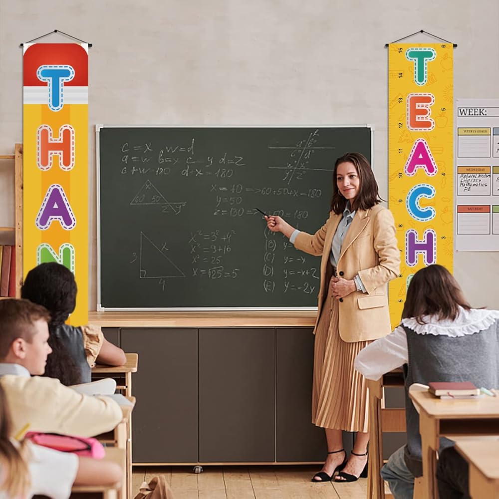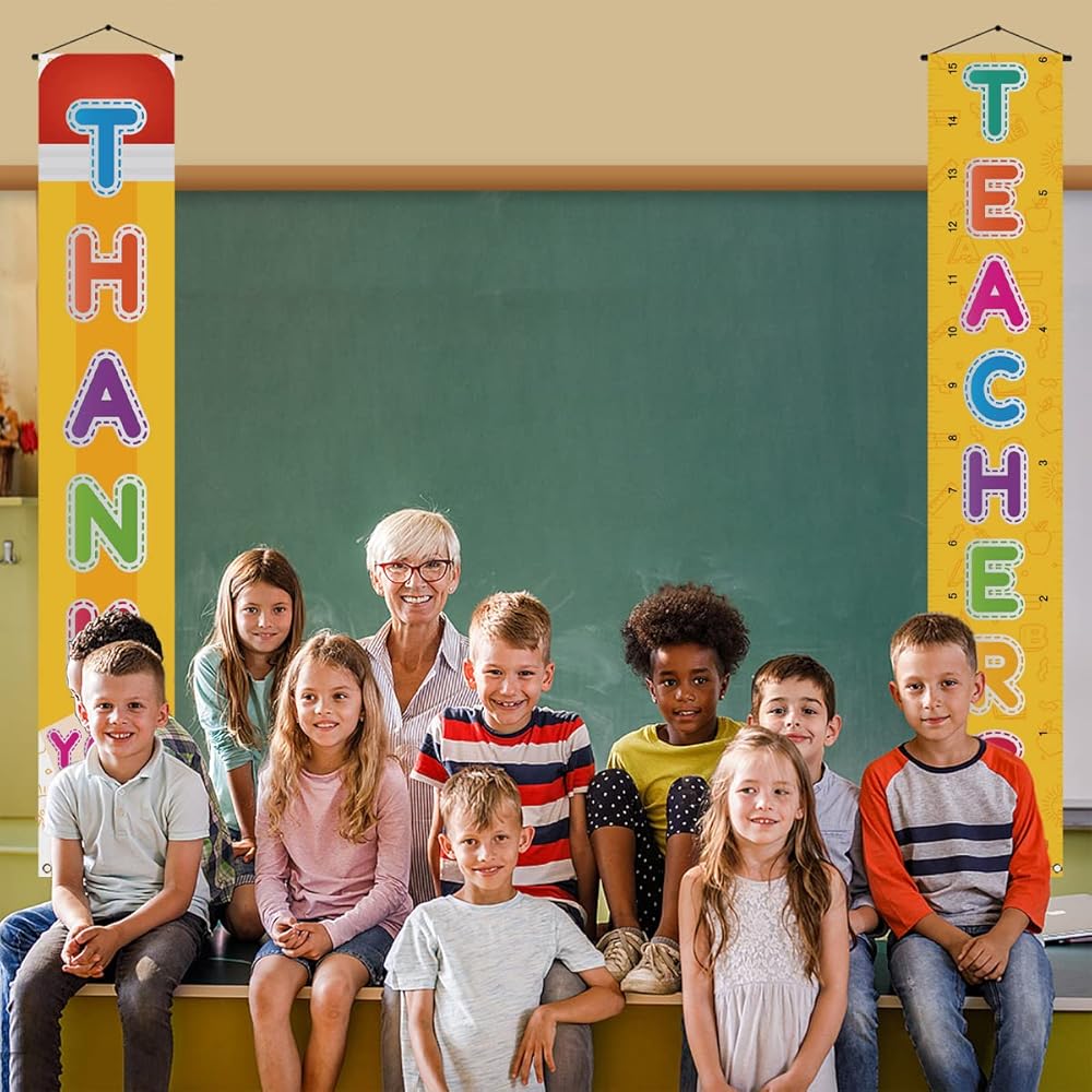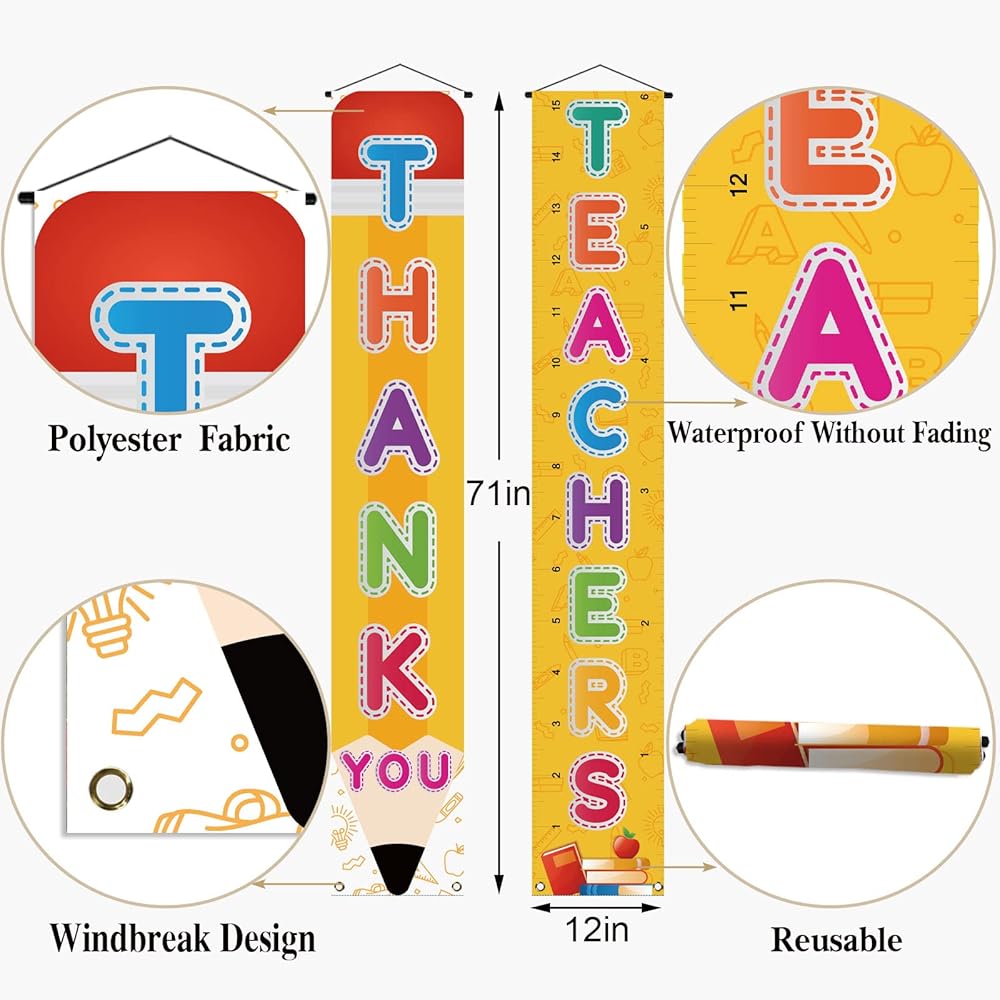 Perfect for door, ceiling, front porch, garage, yard, window, fireplace etc. decoration. And also can be used as your Thank You Teachers photo booth backdrop.