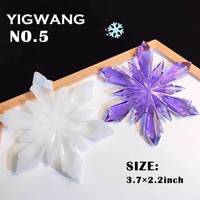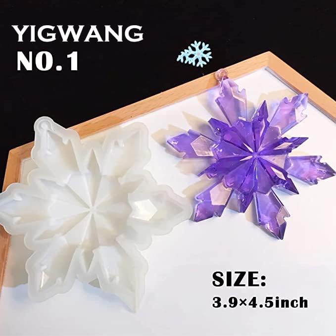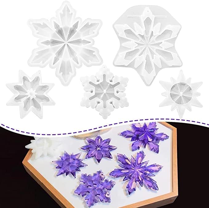 5 قطع قوالب راتنج عيد الميلاد - قالب راتنج ندفة الثلج كبير ثلاثي الأبعاد لتزيين عيد الميلاد بنفسك، سلسلة مفاتيح، قوالب زينة عيد الميلاد للراتنج أو صب الإيبوكسي