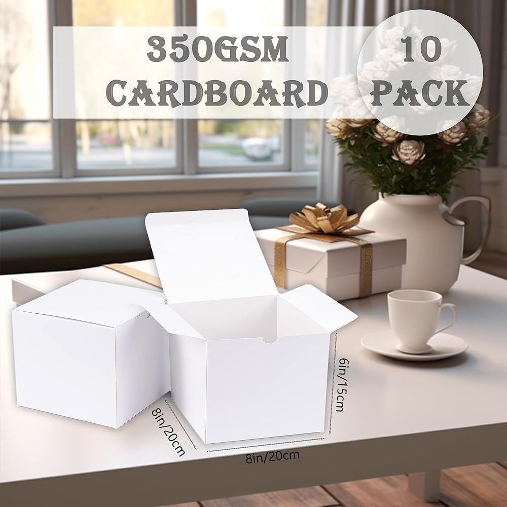 🎁حجم متوسط: عبوة من 10 قطع، مقاس صناديق الهدايا لدينا 20.32 سم × 20.32 سم × 15.24 سم. الحجم مثالي لاحتياجات البيع بالتجزئة أو تقديم الهدايا. كما أنه قادر على أن يناسب أي مناسبة تحتاج فيها إلى هدايا، مثل حفل الزفاف.