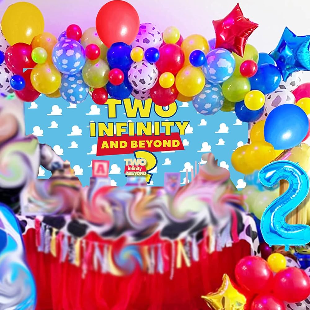 يشمل: اثنين من خلفية انفينيتي وبيوند * 1 / اثنين من أعلى الكعكة إنفينيتي أند بيوند * 1 / بالون أزرق 81.28 سم / 83 بالون / 3 بالونات / شريط إكليل / أداة ربط بالون.