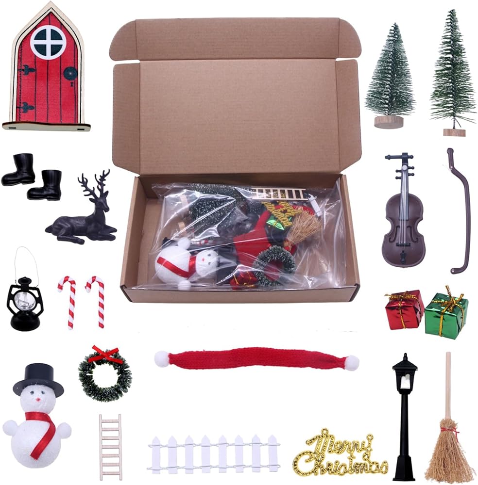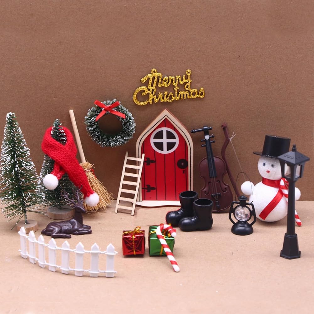 1 xBinaryABC إكسسوارات حديقة مصغرة لبيت دمية عيد الميلاد، ملحقات حديقة جنية عيد الميلاد، إكسسوارات قرية عيد الميلاد، زينة صغيرة لعيد الميلاد، 21 قطعة