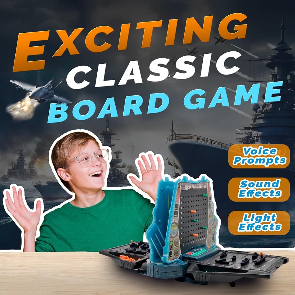 ألعاب لوحية ذات تأثيرات واقعية: مع تأثيرات ضوئية وصوتية واقعية، تجلب هذه اللعبة إثارة الحرب البحرية إلى غرفة المعيشة الخاصة بك. اشعر بالانفجارات واستمع إلى هدير المعركة وأنت تضع إستراتيجيتك وتتفوق على خصمك.