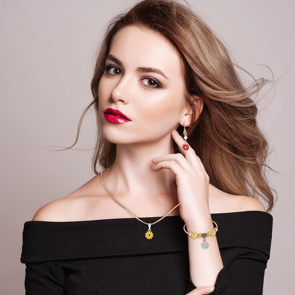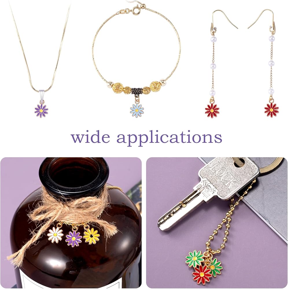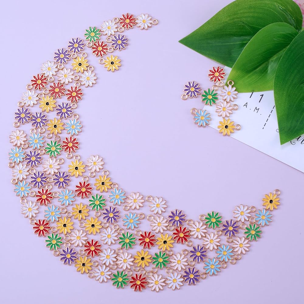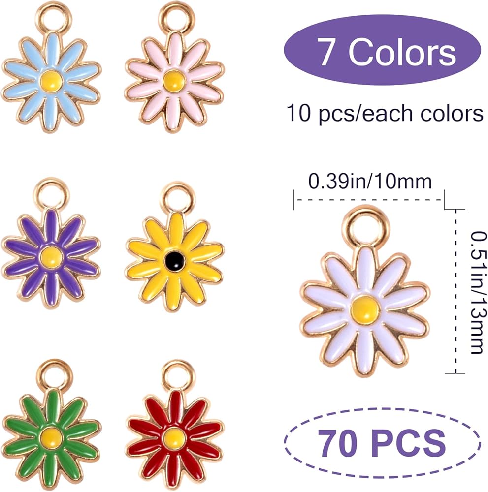 اسم المنتج: 70 قطعة من قلادات الزهور اللطيفة لصنع المجوهرات، زينة زهور الربيع والصيف للنساء والفتيات والأطفال، حلية زهرة الأقحوان المصنوعة من خليط معدني ملون للحرف اليدوية