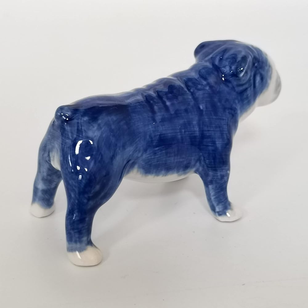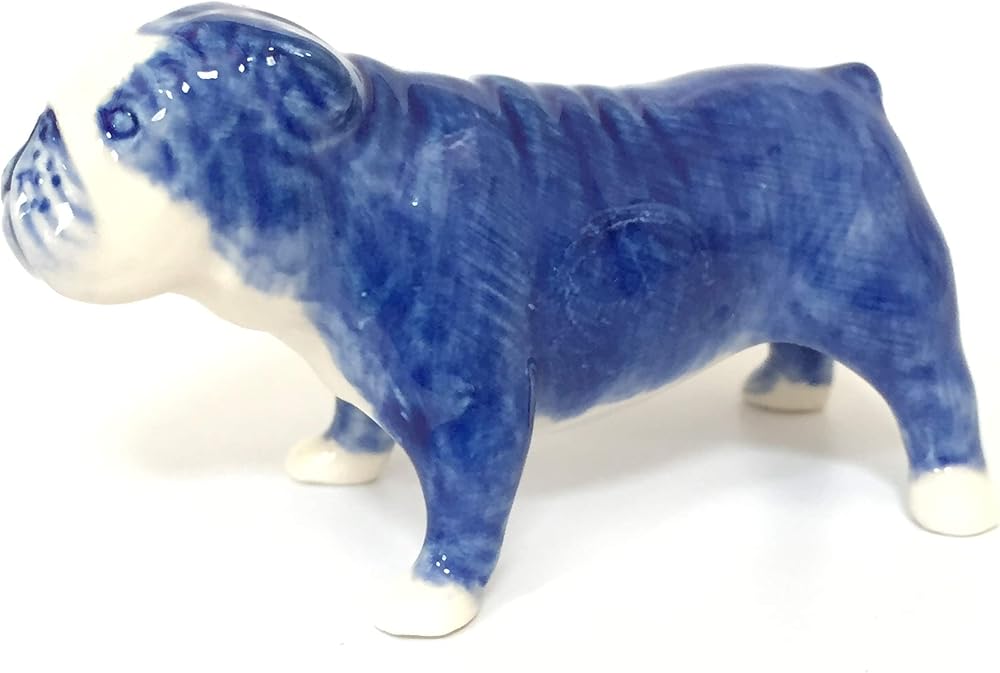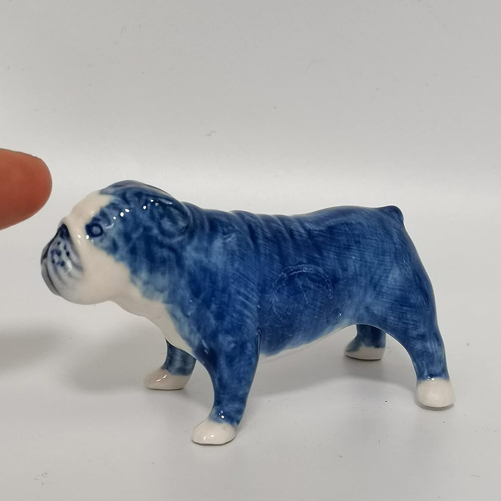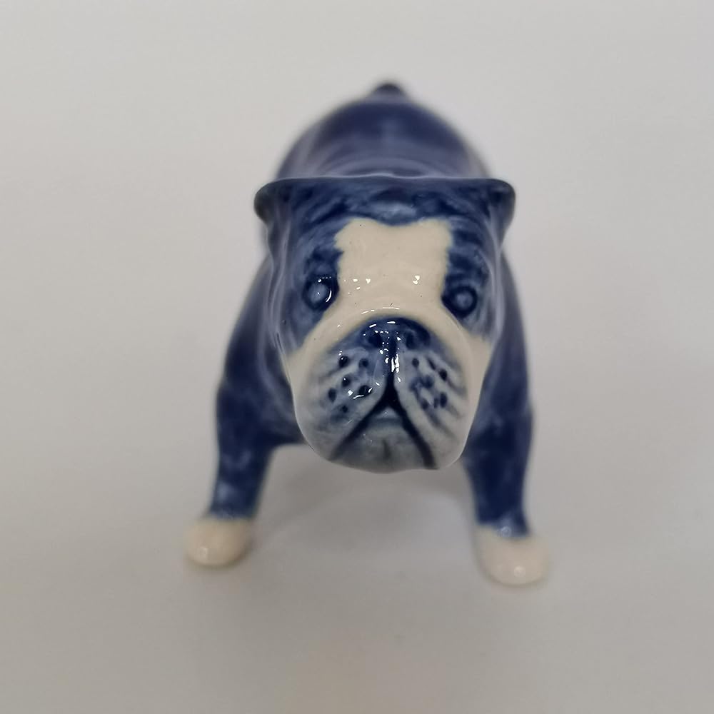 تمثال بولدوج من السيراميك لبيت الدمى باللون الأزرق والأبيض قابل للتجميع في حديقة بونساي مصغرة مصنوعة يدويًا هدية جميلة لطيفة لمجموعة الكلاب