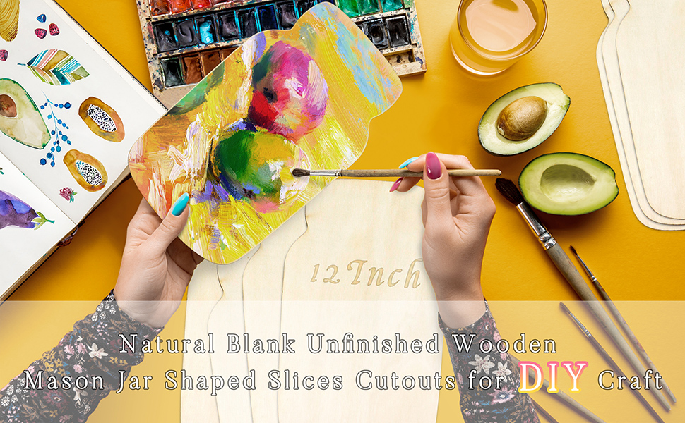 8 عبوات من قصاصات ميسون خشبية غير منتهية مقاس 30.48 سم من Newbested ، قطع خشبية طبيعية فارغة على شكل جرة ماسون للطلاء، الحرف اليدوية والديكورات المنزلية