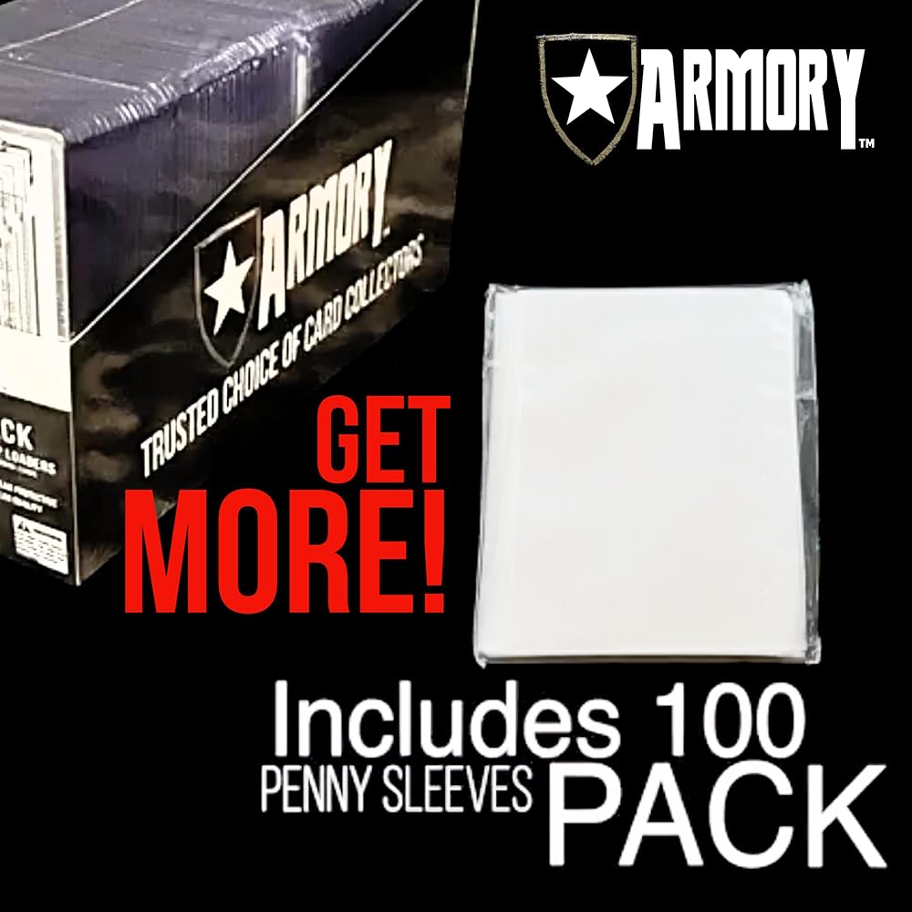 GET MORE WITH ARMORY: Each 100 Pack comes with UV Protected Ultra Clear Armory Top Loaders, 100 Penny Ultra Clear Penny Sleeves, and a Standard Sized Card Centering Tool!