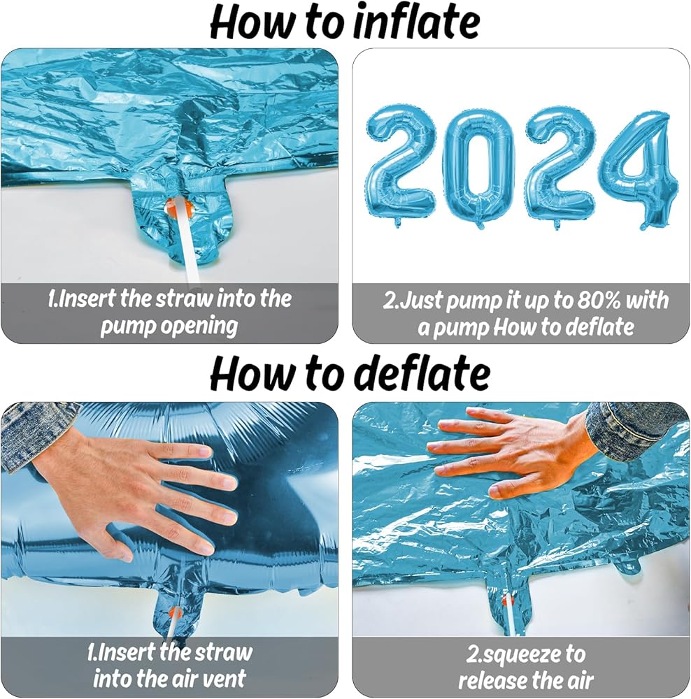 مقاومة للبهتان: تتميز بالونات 2024 هذه بأنها مقاومة للبهتان، مما يضمن بقائها مشرقة ونابضة بالحياة طوال احتفالاتك. تجعل القشة والشريط المتضمنان نفخ البالونات وتفريغها وتأمينها أمرًا سهلاً، مما يجعل عملية التزيين الخاصة بك خالية من المتاعب.