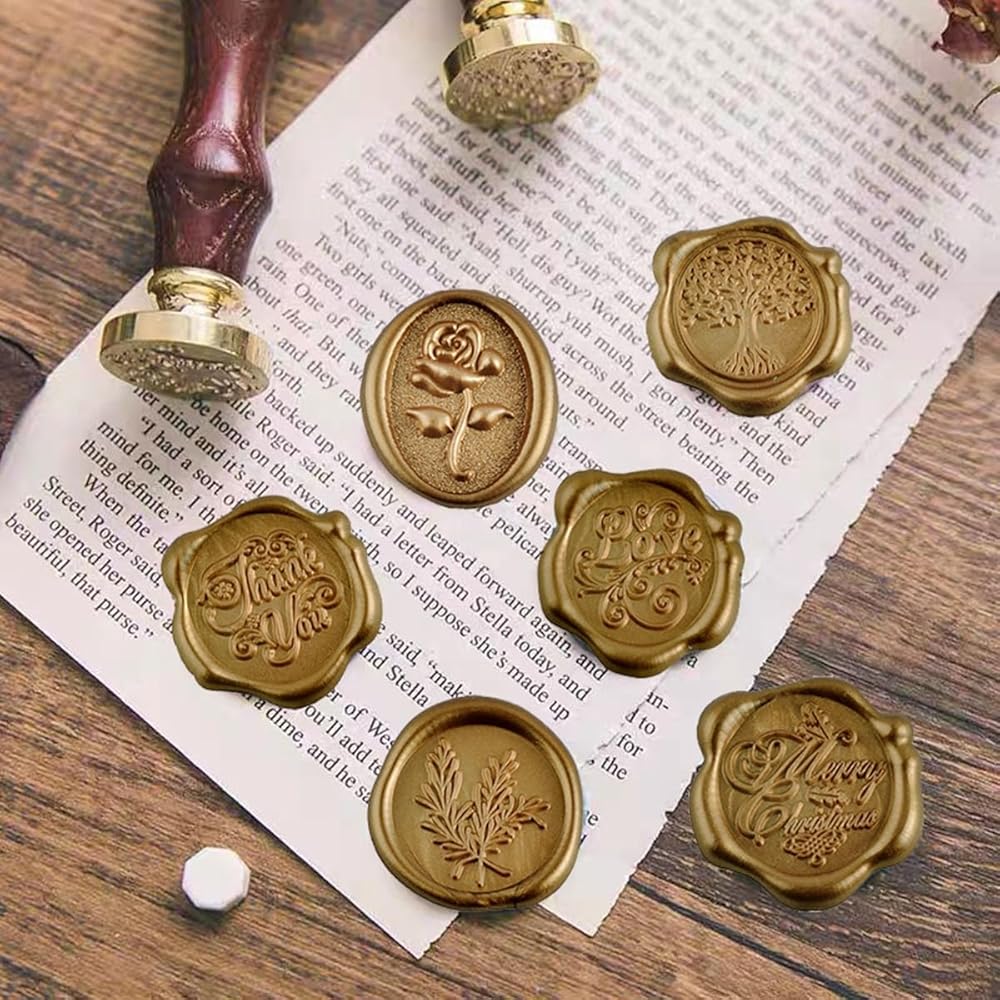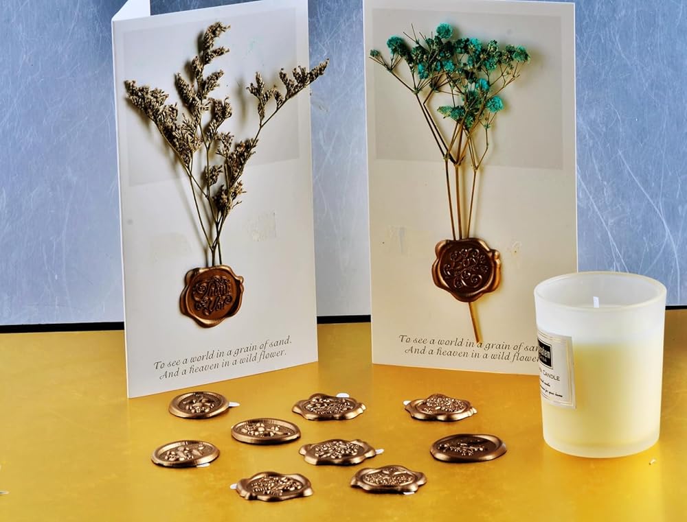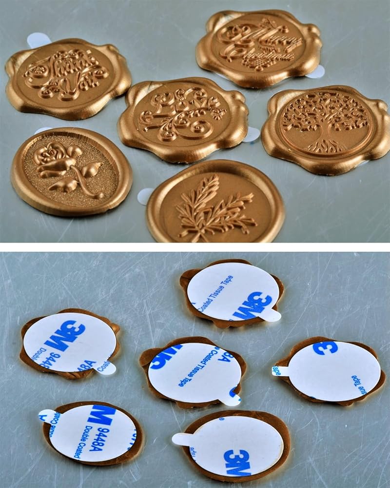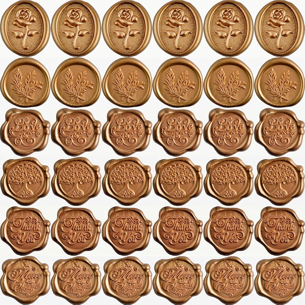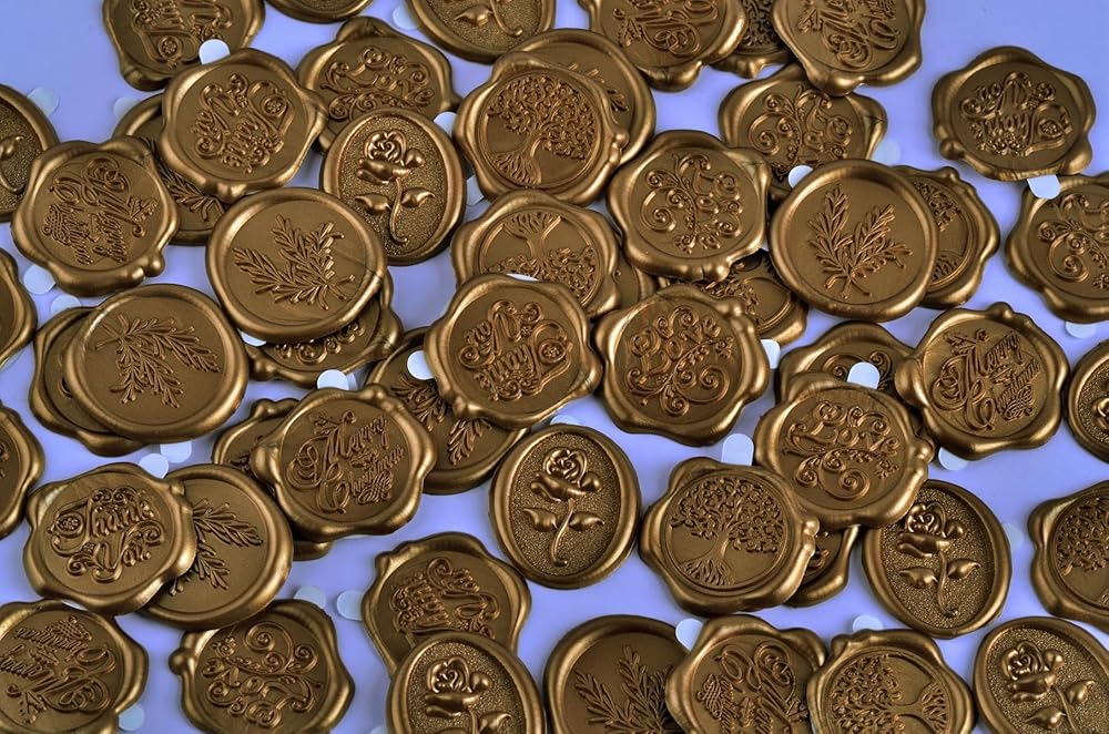 مادة الشمع الحقيقي: ملصقات ختم الشمع الخاصة بنا مصنوعة من شمع حقيقي أصلي عالي الجودة. تضمن تركيبتها الشمعية الأصلية ملمسًا غنيًا وفاخرًا ومظهرًا كلاسيكيًا آسرًا حقًا.