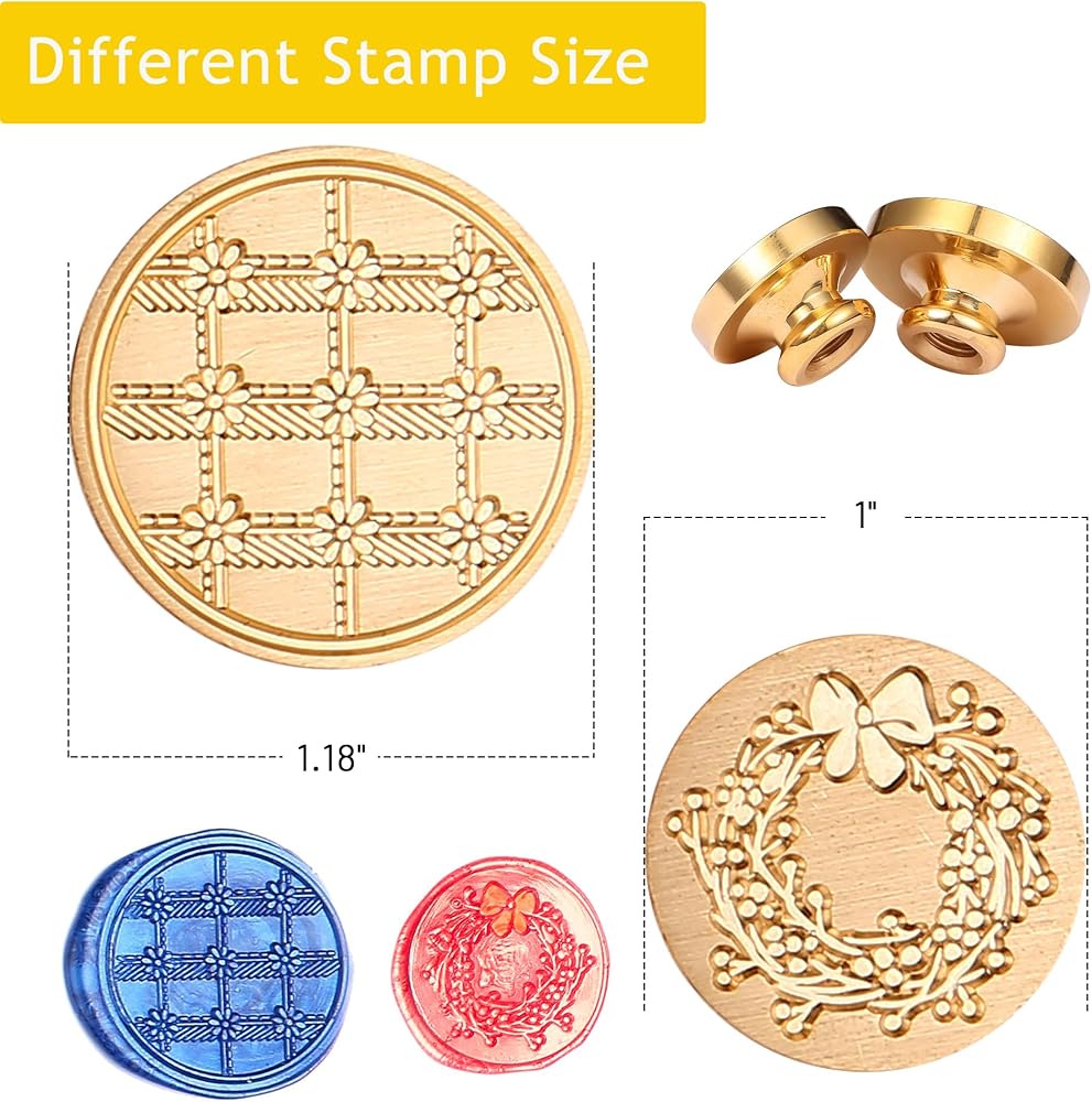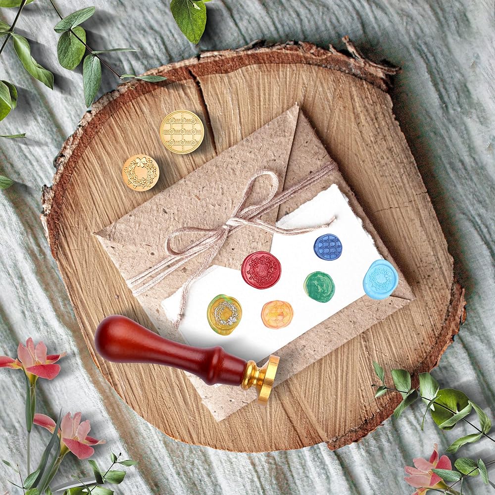 📐حجم الرأس: تختلف طوابع ختم الشمع في النمط والحجم. يبلغ قطر ختم الإكليل حوالي 1 بوصة (2.5 سم)، ويبلغ ختم الشبكة حوالي 1.18 بوصة (3 سم). إنها متاحة للأظرف الكبيرة وكذلك للبطاقات الصغيرة.