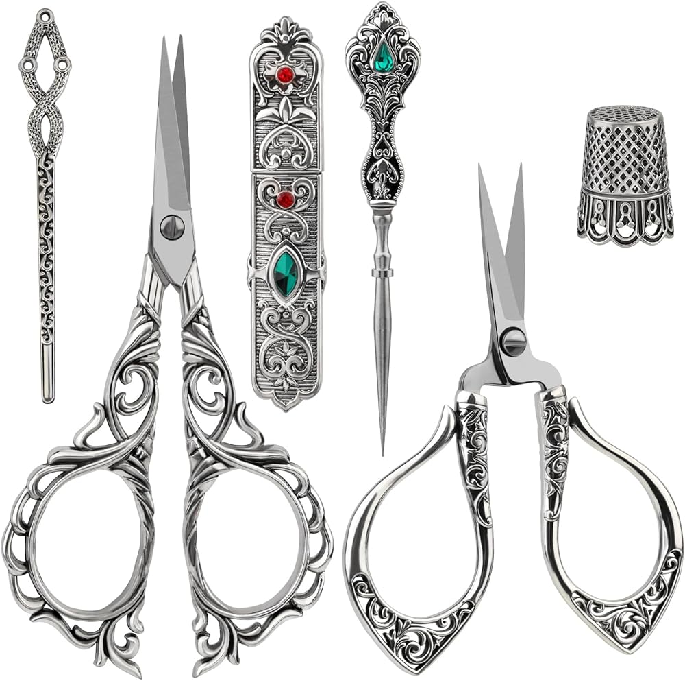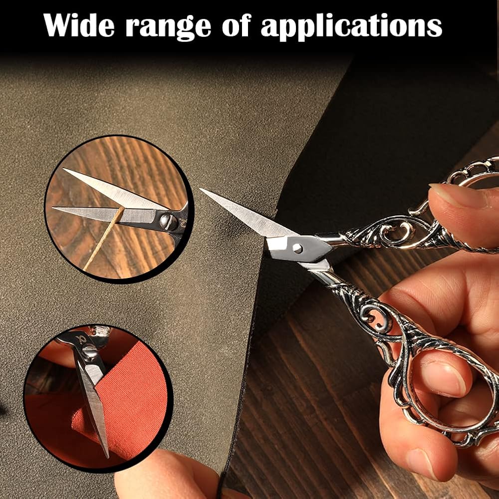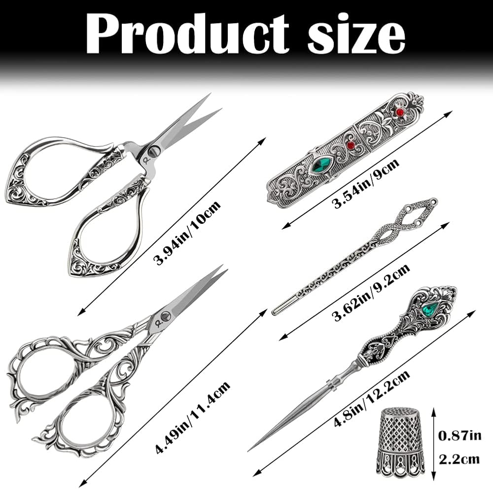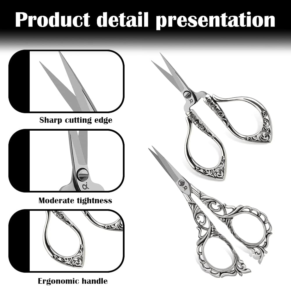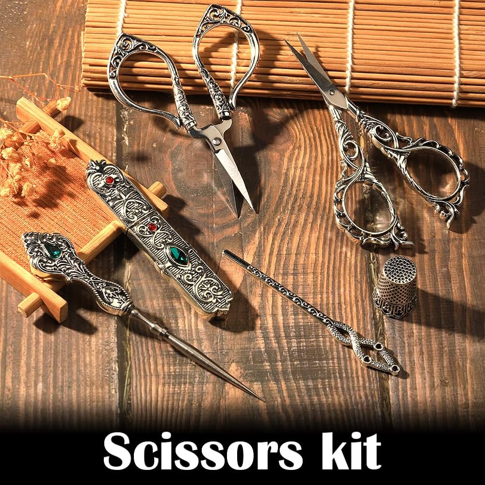 【مجموعة واسعة من التطبيقات】مجموعة مقص التطريز العتيقة رائعة للمستخدمين المبتدئين والمتقدمين. كما أن المظهر الأوروبي القديم يجعلها هدية مثالية لأصدقائك أو عائلتك الذين يحبون الحرف اليدوية مثل التطريز والإبرة واللحف وأعمال الغزل والخياطة وما إلى ذلك.