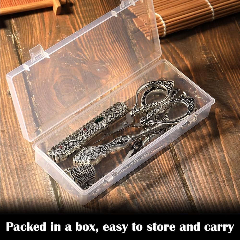 【مجموعة كاملة للإبرة العتيقة】تحتوي مجموعة مقص التطريز على مقصين للتطريز، و1 * كشتبانات للخياطة اليدوية، و1 * إبرة تطريز، و1 * حقيبة إبرة، ومجموعة المقص الكاملة جميعها موضوعة في علبة بلاستيكية، سهلة الحمل وتخزينها. يكفي لاحتياجات الخياطة.