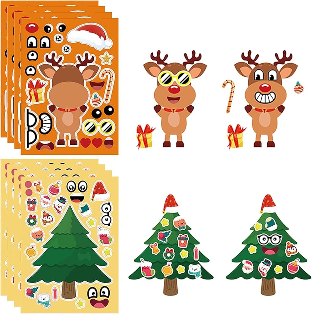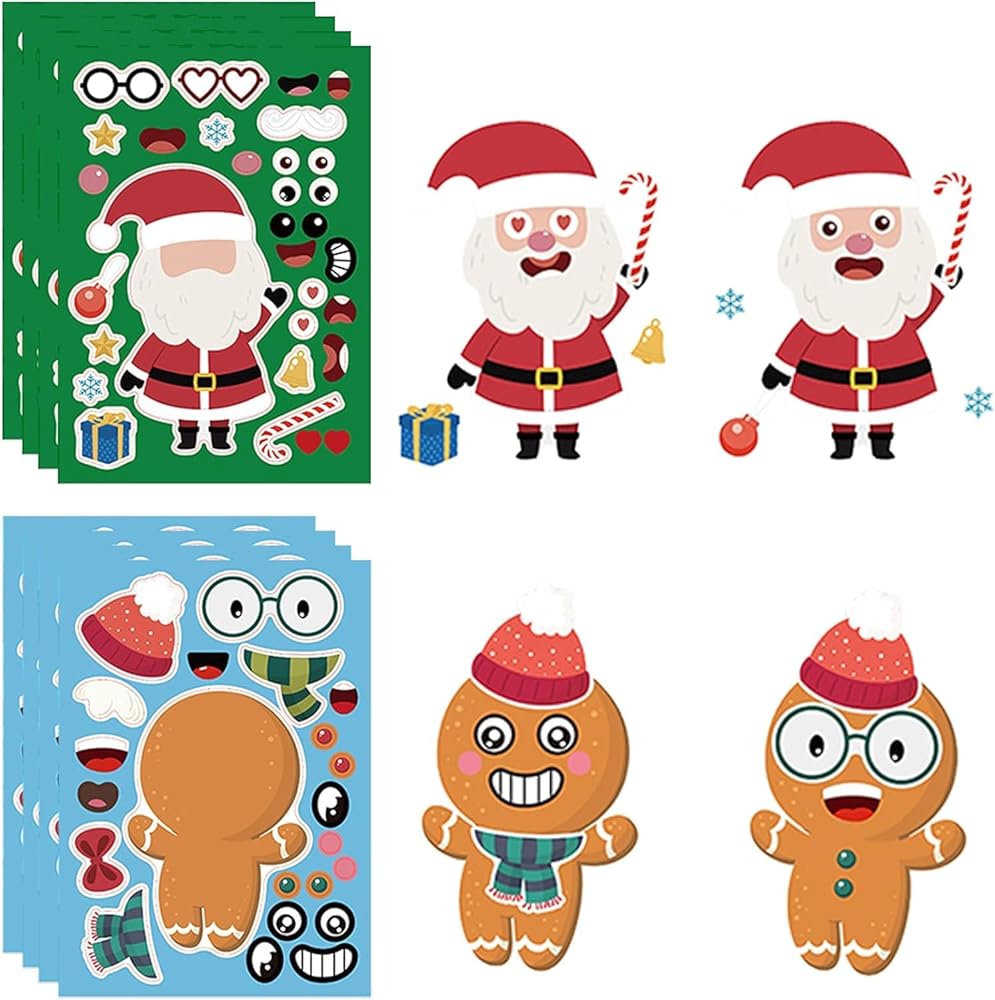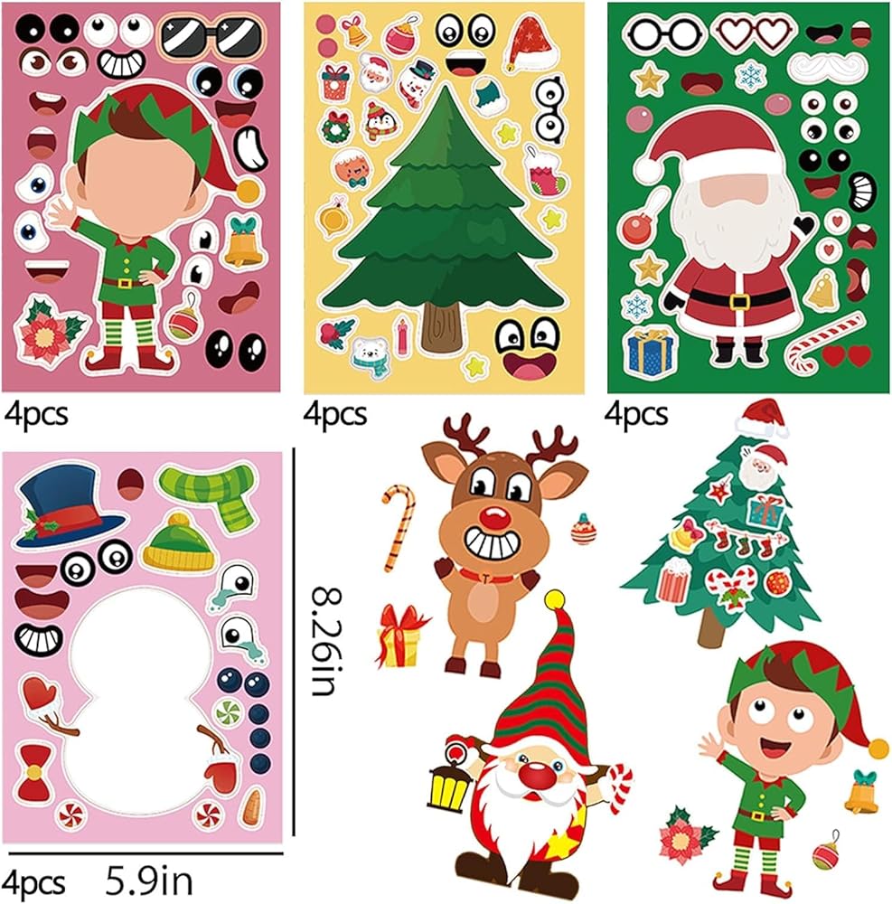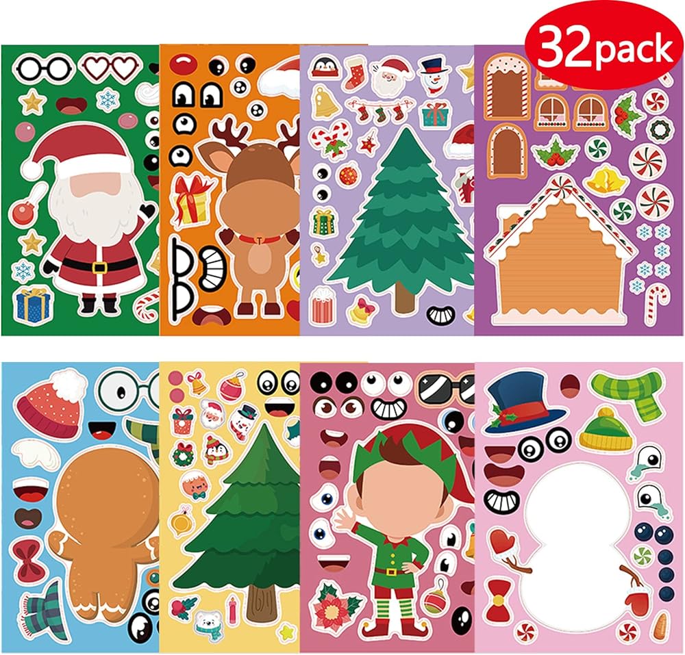 ملصقات عيد الميلاد للأطفال، 32 ورقة تصنع ملصقات للوجه بنفسك، اصنع حيوان الرنة رجل الثلج سانتا كلوز الخاص بك، ملصقات عيد الميلاد للأولاد والبنات هدايا ألعاب حفلات عيد الميلاد