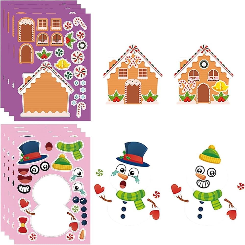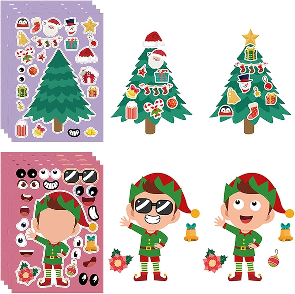 ★【ما تحصل عليه】36 قطعة اصنع ملصقات شخصية عيد الميلاد الخاصة بك، 6 تصميم لطيف، 6 قطع في كل نمط، تشمل رجل الثلج، الرنة، العفريت، رجل خبز الزنجبيل، شجرة عيد الميلاد، كل ورقة تحتوي على مجموعتين مختلفتين لصنع أي وجوه تريدها.