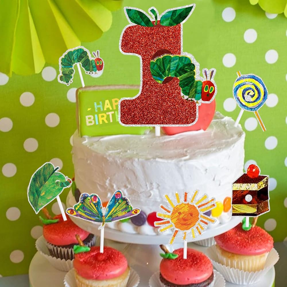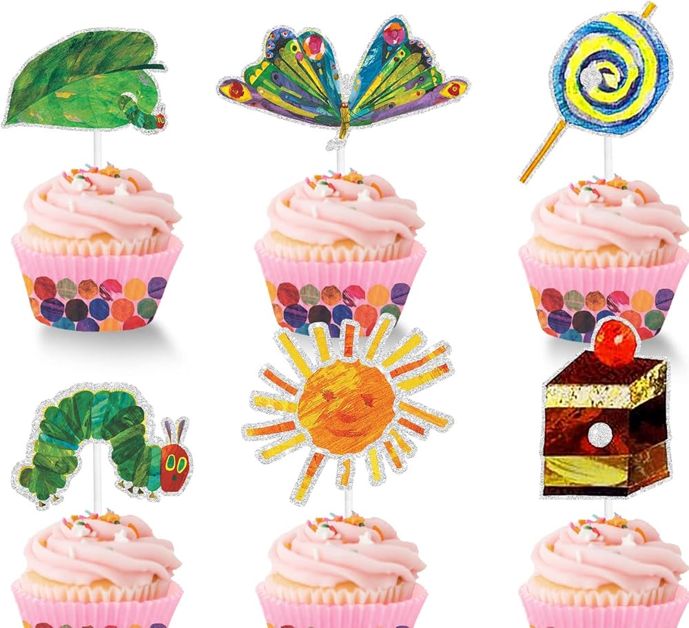 7 قطع مختلفة من أعلى الكعكة من اليرقة هانغر وأداة تزيين الكيك و6 قطع من أغطية الكب كيك، إجمالي 7 قطع.