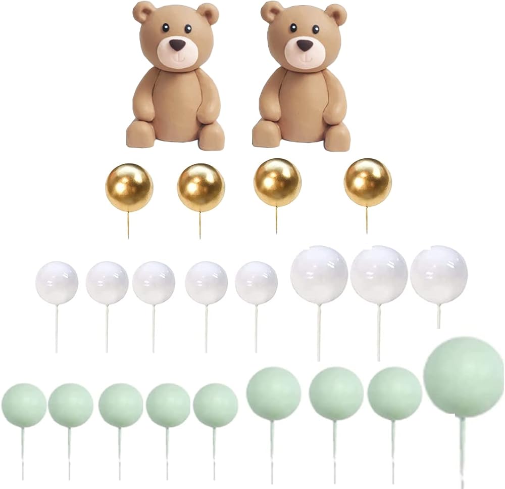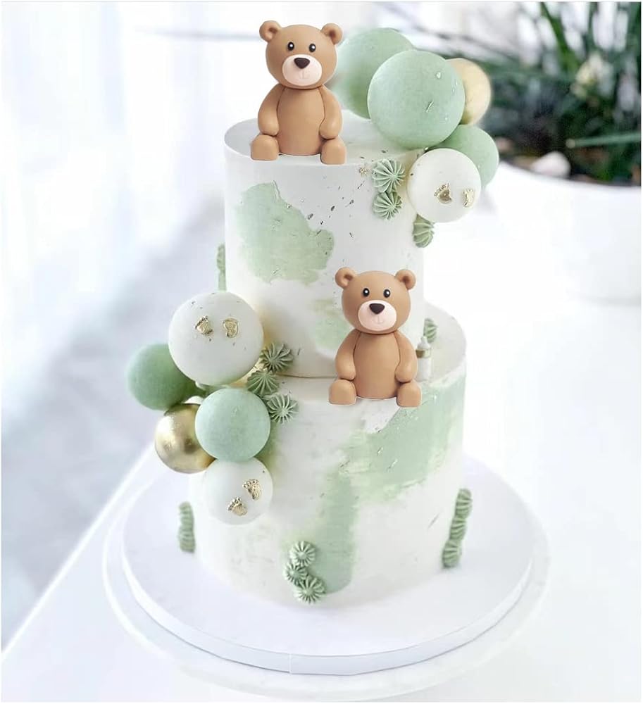 زينة كعكة على شكل دب صغير بتصميم كرة زرقاء لتزيين الكيك (مجموعة من 2 دببة على شكل كرة)