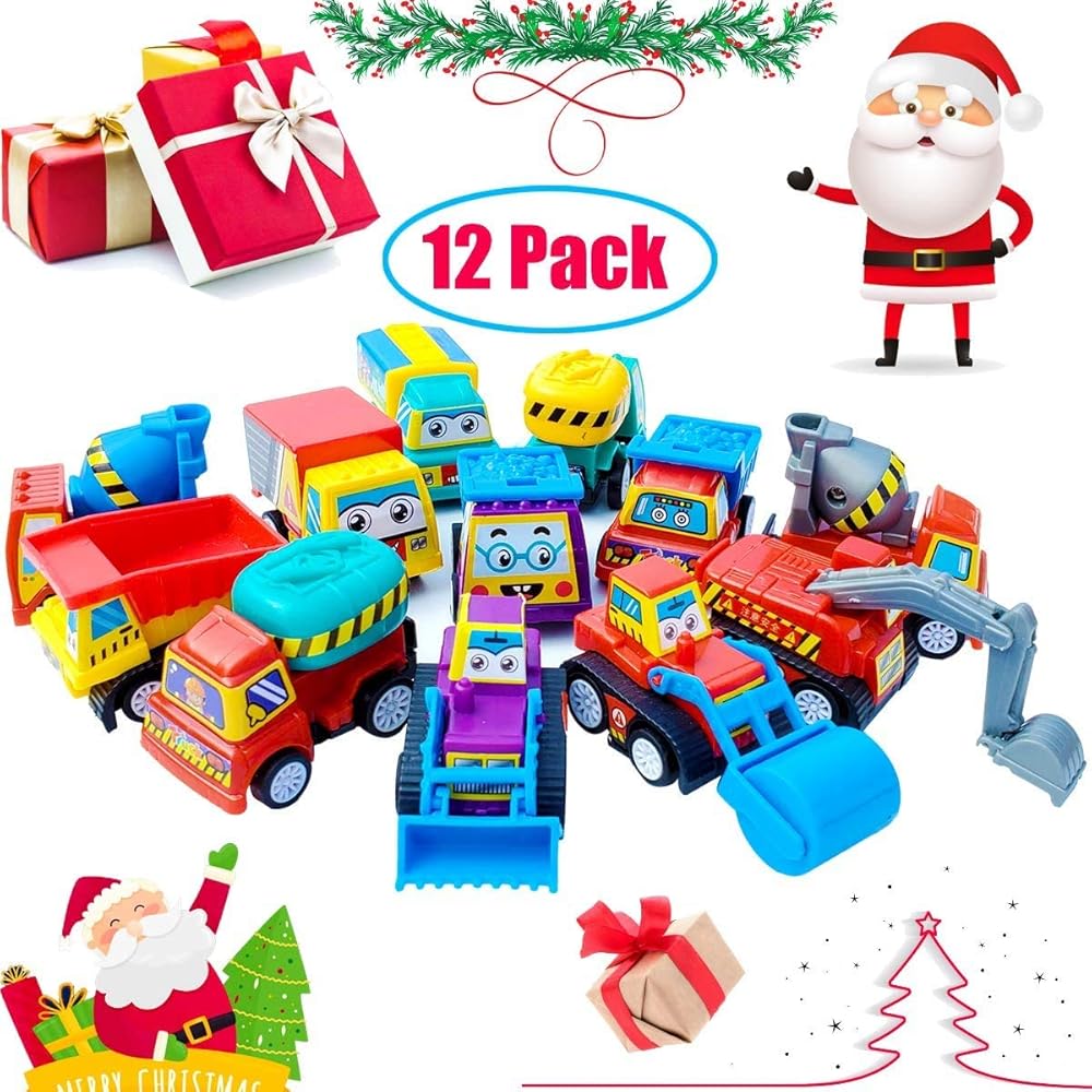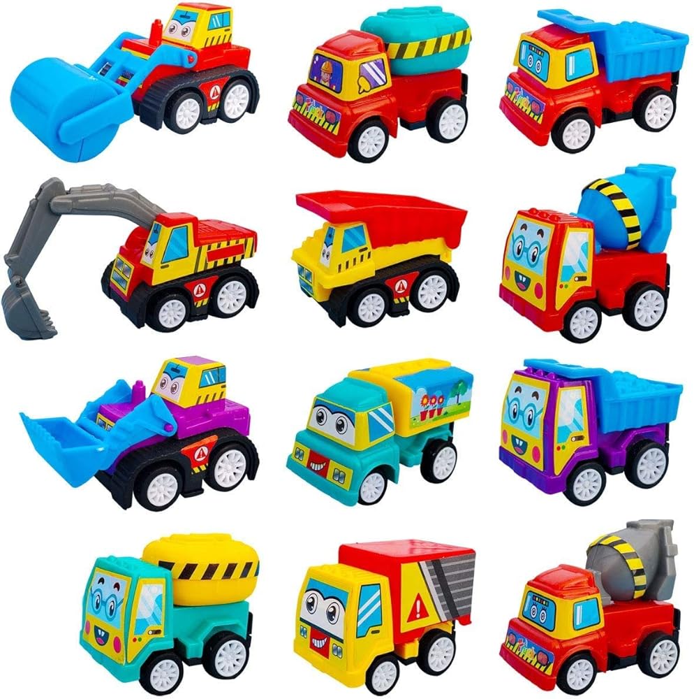 مجموعة من 12 شاحنة بناء صغيرة متنوعة من توكروب 5.08 سم - بيضة عيد الفصح المثالية وبيض بيناتا - هدية للأطفال الصغار الأولاد والبنات والأطفال - مجموعة لعب سيارة سحب للخلف والذهب.