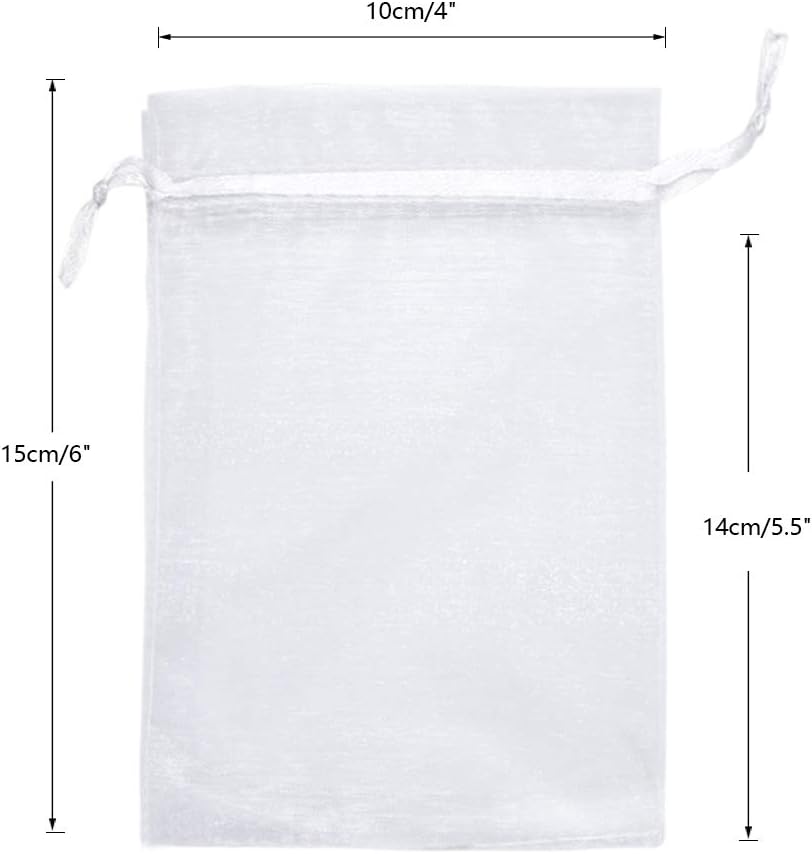 100 كيس من أكياس الأورجانزا البيضاء عالية الجودة مقاس 4 × 6 انش مع تصميم برباط سحب، يسهل عليك وضع الأشياء وأخذها، مدروسة وعملية. مناسبة للاستخدام الشخصي أو العمل، وتأتي دائمًا في متناول اليد في الحياة اليومية وحفلات الزفاف والحفلات والعروض التجارية وما إلى ذلك. مثالية لحمل الوجبات الخفيفة الصغيرة والفواكه والتوابل والمجوهرات وما إلى ذلك.