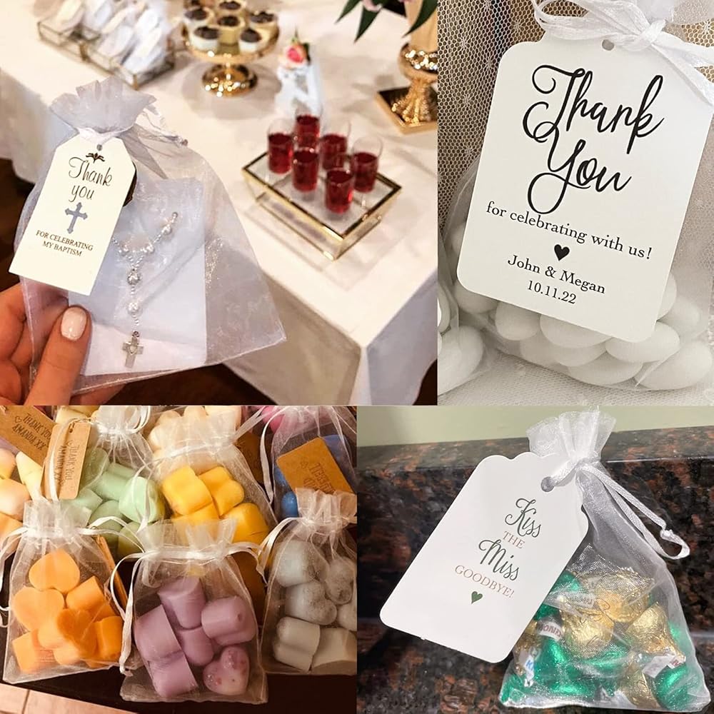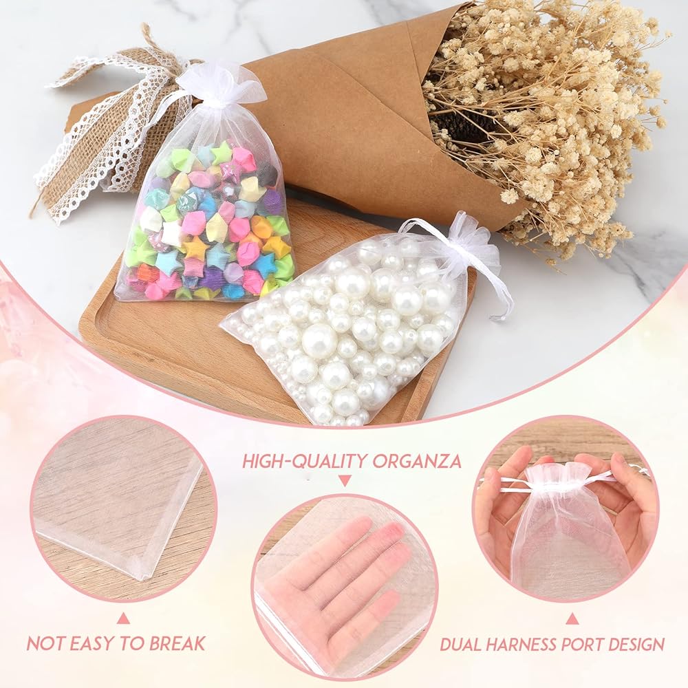 [جودة ممتازة] - حقائب الهدايا ذات الرباط مصنوعة من الأورجانزا الشفاف عالي الكثافة ورباط من الساتان، مصنوعة يدويًا ومصنوعة بشكل جيد. خياطة دقيقة، قوية ومتينة، ناعمة وسلسة الملمس. رباط الساتان مربوط بشكل آمن، ولن تسقط الأشياء.
